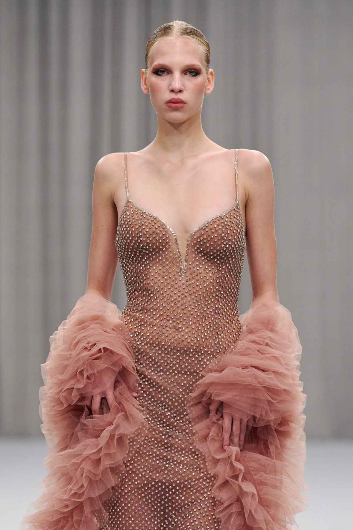 ادخلي عالم الأناقة الرفيعة مع فستان Chic and Holland HF110474، هذه التحفة المصممة للسهرات الكوتورية واللحظات التي لا تُنسى. مصنوع من نسيج مطرز فاخر، يعانق هذا الفستان الطويل والمناسب قوامك برقة مع ياقة حبيبة حساسة وحمالات نحيفة، كاشفًا الكمية المناسبة من السحر. تفاصيل الزهور المعقدة تضيف لمسة حرفية، مستحضرة الجمال الخالد الذي يأسر في كل ضوء. السحاب الخلفي الخفي يضمن مقاسًا خاليًا من العيوب، مما يتيح لك الحركة بثقة وسهولة. مناسب تمامًا للاحتفالات الراقية، يحول هذا الفستان وجودك إلى بيان ساحر للأناقة والكرامة.