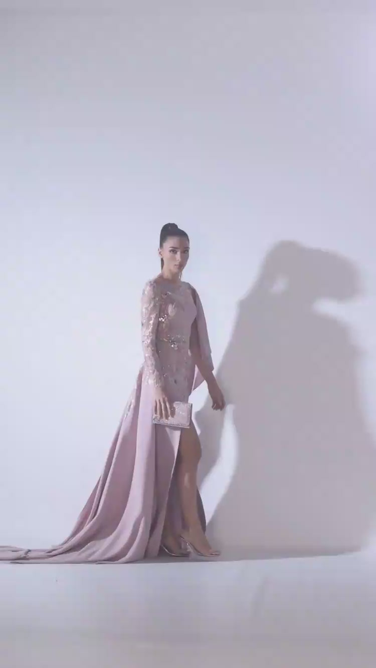 ادخل إلى عالم الأناقة المكررة مع فستان Reverie Couture FW58، إبداع مذهل مصمم خصيصًا للسهرات التي لا تُنسى. مصنوع من كريب ماروكان فاخر، يبرز هذا التصميم المناسب بشكل أنيق قوامك بأناقة، بينما توفر الأكمام الطويلة والياقة الأنيقة جاذبية خالدة. تضيف شقًا دراماتيكيًا وقطارًا جارفًا لمسة من الدراما الخفية، معززة حركتك مع كل خطوة. ترتقي التفاصيل الخرزية والتطريز الرائعان بالفستان بشكل فني، معبرة عن حرفية لا مثيل لها. سواء كنت تشرف على حدث كوتور أو تكرم يومًا خاصًا كأم العروس، يغمرك هذا الفستان الطويل بالفخامة، ويعدك بأنه سيأسرك ويلهم الإعجاب طوال المناسبة.