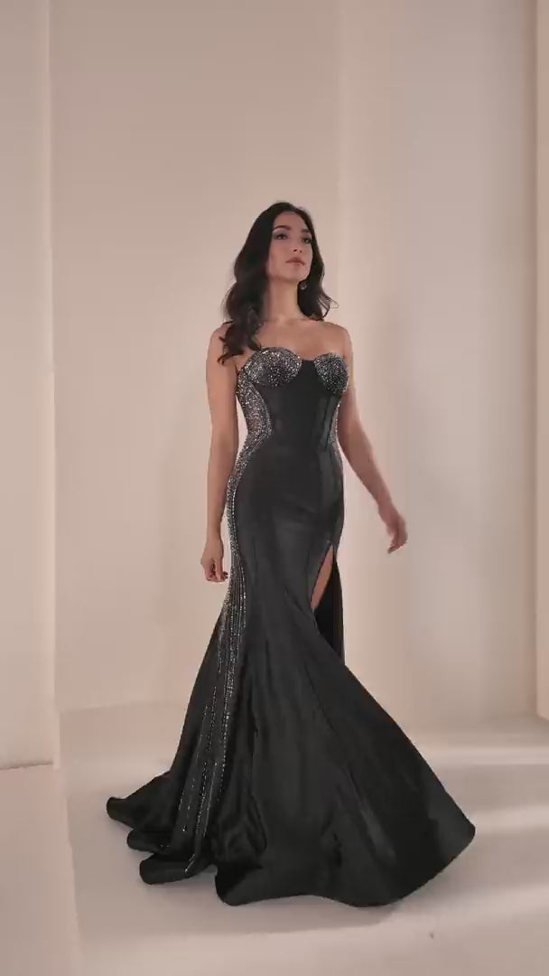 إيلي وايلد EW37010 فستان بروم من نسيج مطاطي مع لمسات حجرية، ربيع 2026.