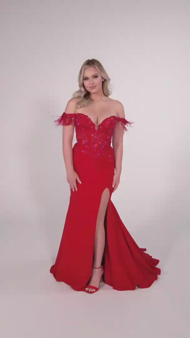 ادخلي إلى الأضواء مع Ellie Wilde EW34028، تحفة من الأناقة المصقولة مصممة لرفع تجربتك في المساء أو الحفلات الرسمية. هذا الفستان الطويل والمناسب بشكل ميرميد، المصنوع من قماش الكريب الفاخر ومطرز بدقة، يحدد قوامك بدقة ساحرة. يحدد الرقبة المكشوفة بشكل حبيبات كتفك، بينما الشق الجريء والذيل المزين بالريش يضيفان لمسة متطورة من الغموض والجاذبية. مع سحاب مخفي عند الظهر لمقاس مثالي، يعد هذا الفستان مزيجًا سلسًا من الراحة والسحر، مما يضمن أن تتركي انطباعًا مذهلاً يدوم طويلاً بعد انتهاء الليلة.