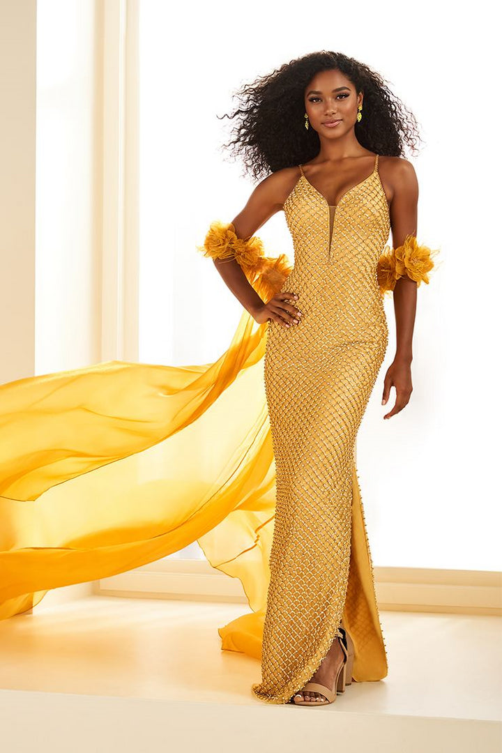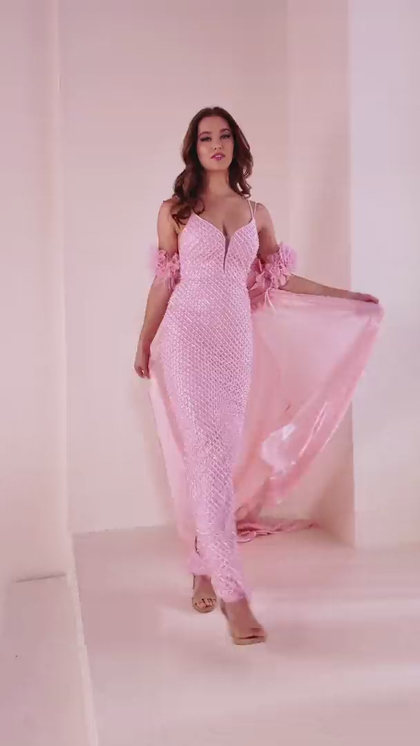 ارتق بأناقتك مع Ellie Wilde EW36027، هذه اللوحة الفنية المصممة لتسحر في أي مناسبة مميزة مسائية أو مناسبة العروسة. مصنوعة من شبكة مطرزة بشكل متقن تغطي بطانة البونجي الناعمة، تعانقك هذه الفستان المصمم بشكل ملائم بعنق قلب عميق وحمالات رقيقة، مسلطًا الضوء على قوامك بدقة رشيقة. استمتع بحركة الزهور والريش ثلاثية الأبعاد التي تضفي ملمسًا ساحرًا على نسيج الساتان السائل. الشق الدرامي والطرحة الطويلة تضيف جاذبية ساحرة، بينما تقدم الكاب الطويل القابل للفصل أناقة متعددة الاستخدامات. مع سحاب خلفي محتشم، يعد هذا الفستان الراحة إلى جانب الجمال المذهل، مما يجعلك لا تُنسى.