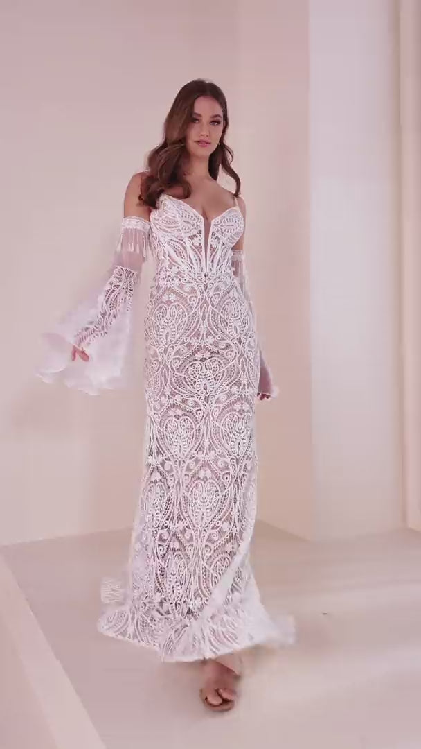 ادخلي إلى الأناقة الخالدة مع Ellie Wilde EW36030، تحفة مصممة لرفع مناسباتك الأكثر تقديرًا. يتميز هذا الفستان المسائي الطويل بقصة ملتصقة تحتضن جسمك بأناقة، مصنوع من دانتيل فينيس ناعم مكدس فوق شيفون جاري وتول ناعم. يعزز البوديس الكورسيه من منحنياتك الطبيعية بينما يضيف الياقة القلبية لمسة من الرومانسية الكلاسيكية. مصمم بأكمام طويلة منفصلة وسحاب خلفي م discreت، يقدم هذا الفستان راحة وأناقة. سواء كنت تحضرين حدثًا رسميًا أو تحتضنين الضوء كأم العروس، يعد هذا الفستان الفاخر بأن يغمرك بالجمال الرفيع والثقة.