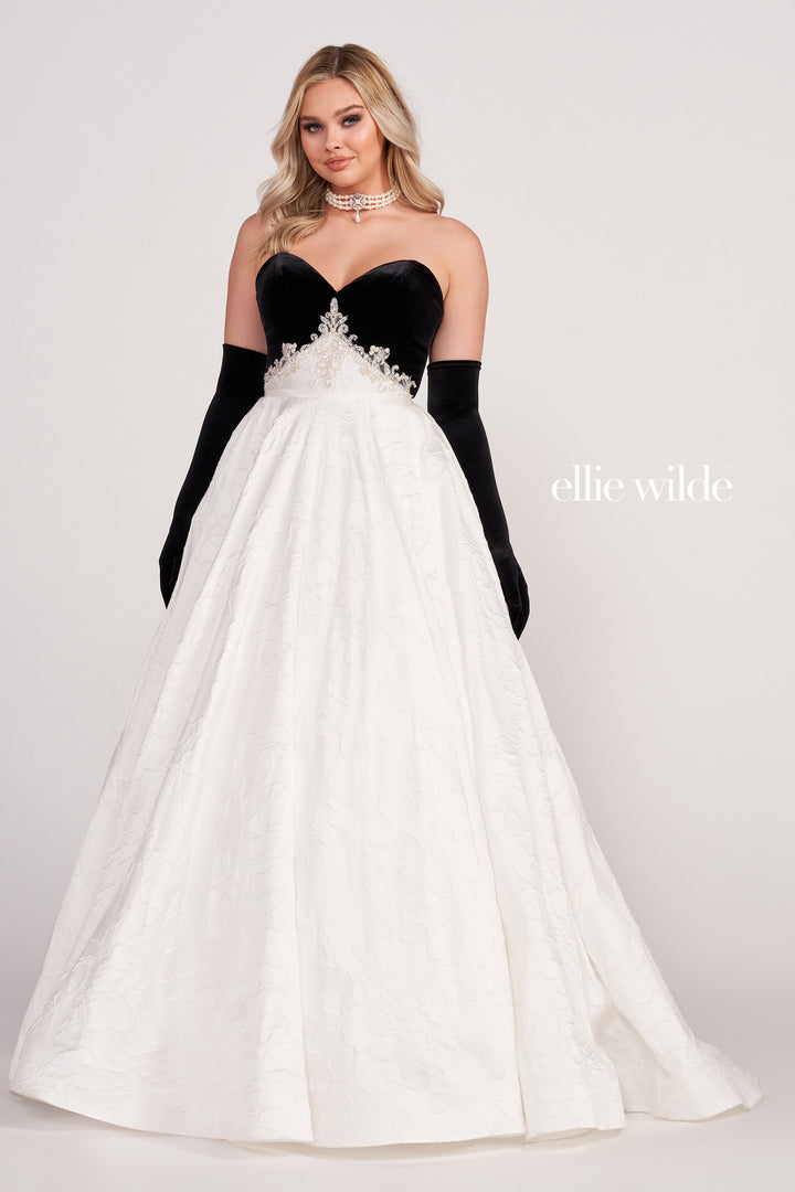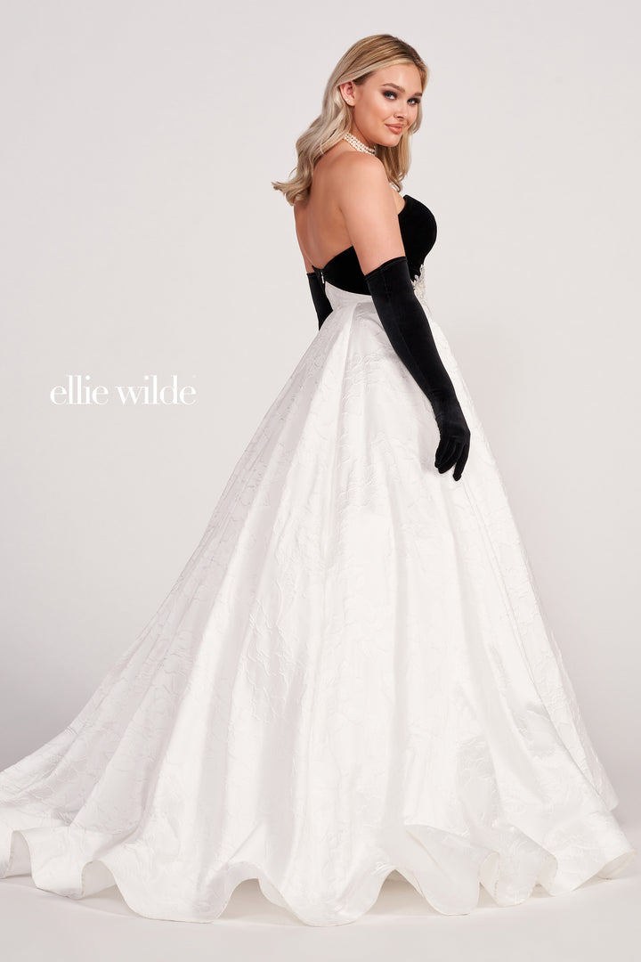 ادخلي إلى ليلة من الأناقة الفائقة مع Ellie Wilde EW34133، إبداع مذهل يحتفل بذوقك الراقي. مصنوع من الفيروز الفاخر والجاكار المزخرف بدقة، تبرز هذه الفستان الطويل بقصة A-Line جمال قوامك بسهولة بينما يدعو القماش الناعم إلى التمتع باللمس. يحدد الياقة القلبية برقة ديكولتيه، معززة جاذبيتك بنعومة خالدة وأناقة بلا أكمام. تتأرجح قطار مذهل خلفك، ماراً بك بأناقة وثقة ويترك انطباعاً لا يُنسى. تُكمل هذه الفستان الرائع بسحاب خلفي متقن، كل مناسبة خاصة إلى لحظة فاخرة حيث تصبحين النقطة المحورية غير المنقوصة من الاهتمام.