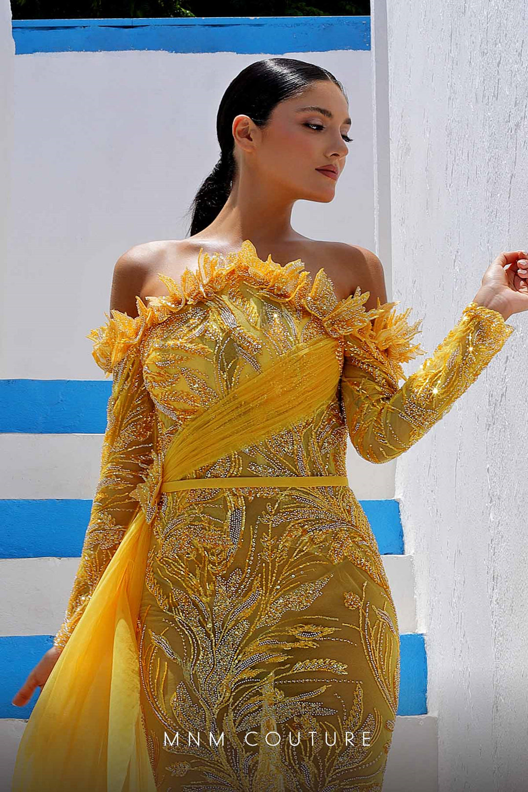 ادخلي عالم الأناقة غير المسبوقة مع فستان المساء المذهل MNM Couture K4006، الذي صمم ليأسر الألباب. مصنوع من قماش مطرز فاخر، يبرز هذا الفستان بقصة السمكة الضيقة بشكل رائع جمال جسمك، بينما تضيف الأكمام الطويلة المنسدلة عن الكتف لمسة جذابة من الأناقة. يحدد العنق البارد بشكل أنيق منطقة الصدر، ويقدم تفاصيل التنورة الجانبية تدفقًا خفيفًا من الحركة، مما يجعل كل خطوة تعبيرًا عن الكرامة. سواء كنت تحضرين حفلة كبيرة، أو حفلة تخرج، أو تقفين بكل فخر كأم العروس، يجمع هذا الفستان الكوتور الطويل بين السحر الخالد والحرفية الرائعة، مما يضمن لك أن تتألقي بسهولة طوال سهرتك الخاصة.