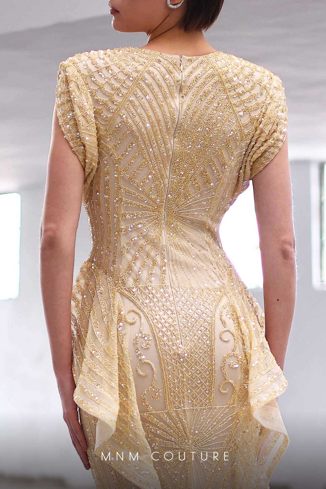 ادخلي في أجواء من السحر المكرّس مع فستان MNM Couture M1004، حيث يلتقي الفن بالأناقة. يتميز هذا التحفة المرصعة بفتحة عنق عميقة محاطة بأكمام كاب مهيكلة، معززةً قوامك بصدر مصمم ومناسب ينسدل إلى تنورة ضيقة. تفاصيل الببلوم الدقيقة عند الخصر تضيف لمسة أنيقة، بينما يتبع الطراز الأنيق للفستان خلفك، مما يضمن أن تلفتي الانتباه في كل مناسبة مسائية رائعة أو مناسبة مكرّمة. مصمم بسحّاب خلفي متقن، يجمع هذا الفستان الطويل بين الراحة والأزياء الراقية، مما يتيح لك الاستمتاع بالهدوء الفائق والجمال الخالد طوال ليلتك الخاصة.