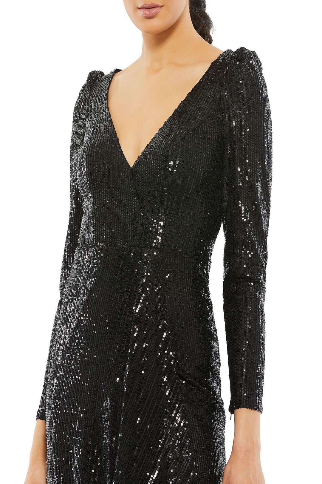 ادخلي إلى الأضواء مع فستان Mac Duggal 26395، فستان طويل مذهل مصمم لرفع مناسباتك الأكثر تميزًا. مصنوع من اللمعان اللامع، يحدد هذا الفستان المناسب بشكل رائع قوامك، بينما تقدم الرقبة العميقة الأنيقة والأكمام الطويلة توازنًا رفيعًا بين الجاذبية والأناقة. الشق الجريء يضيف لمسة من الحداثة، مكشوفًا ما يكفي لجذب الانتباه دون الإفراط. مثالي للعودة إلى المنزل، ولحظات أم العروس، أو الاحتفالات بالمقاسات الزائدة، يضمن إغلاق السحاب السلس تناسقًا خاليًا من العيوب. اختبري حرفية الصناعة الرائعة والسحر الساطع لـ Mac Duggal وأنت تستعيدين أمسيتك بثقة وأناقة.