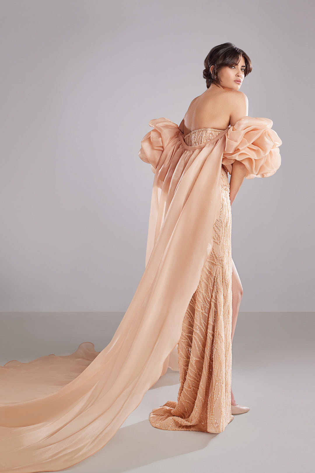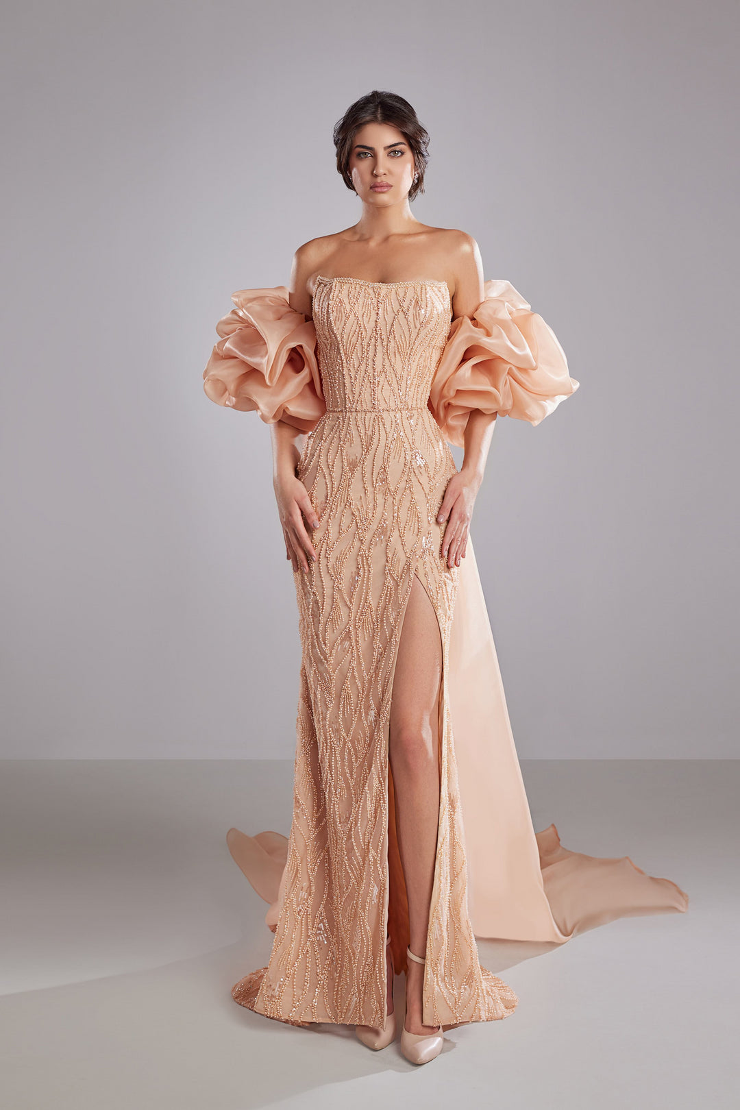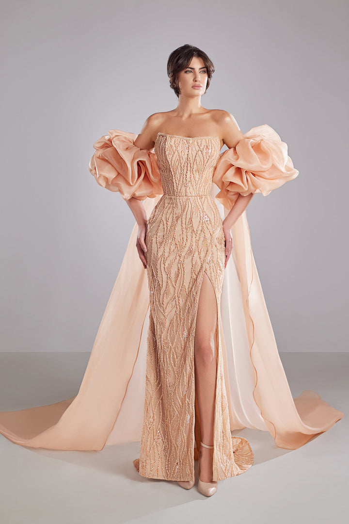 اخطوإلىأضواءالشهرةمعفستانApolloCoutureSS009،حيثيلتقيالأناقةبالفنيةفيطقمخلابمثاليللمناسباتالأساسية.مصنوعمنقماشمرصعرائع،يتميزهذالفستانالسهرالطويلبقصّةضيقةتبرزشكلجسمكبأناقة،بينمايضيفخطعنقمربعجواًمنالرقي.تتدلىعباءةالأورجانزالمذهلةبرشاقة،مُحدثةتأثيراًسحرياًمعكلحركة،بينماتُدخلالكشاكشالمعقدةوشقجريءلمسةمرحةومهذبة.معسحّابخلفيعملي،يُعدهذاالفستانعملياًبقدرماهوفاخر.تزيّنفيApolloCouture،واصنعيذكرياتلاتنسىكأمالعروسأوفيأيحدثكوتور.