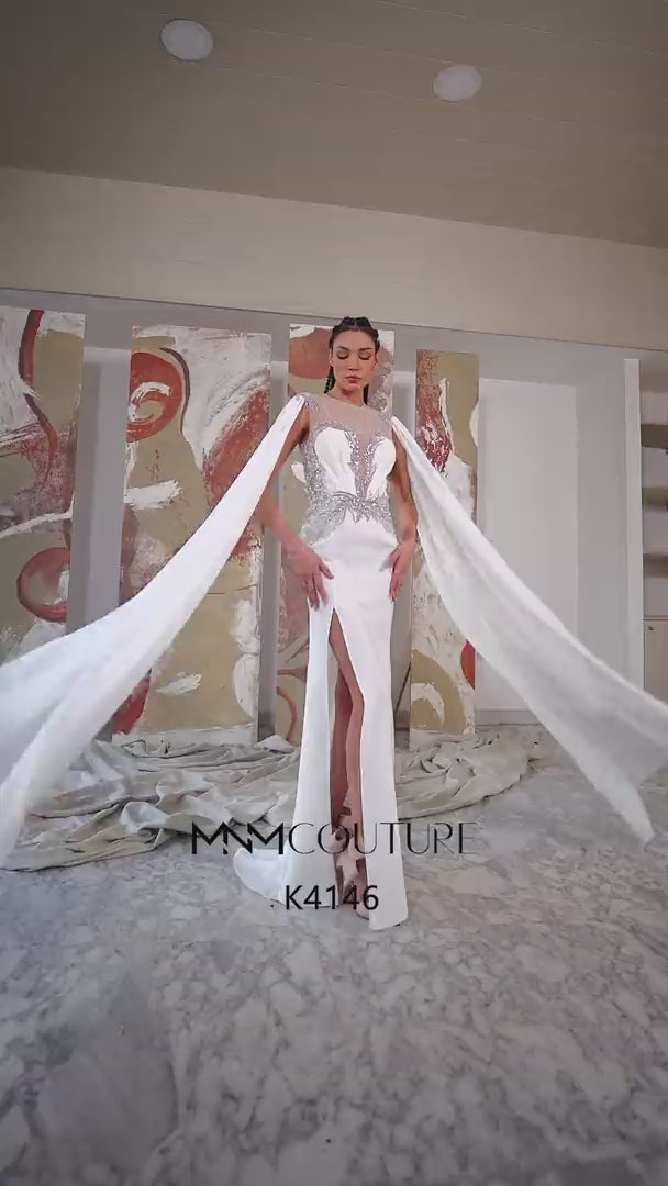 ارتقِ بحضورك المسائي مع فستان MNM Couture K4146، تجسيد مذهل للأناقة والفن من مجموعة ربيع 2024. مصنوع من قماش الكريب الفاخر، يحدد هذا الفستان الضيق ملامح جسدك برشاقة، بينما تضيف التطريزات المعقدة بُعدًا حسياً دقيقًا يلتقط الضوء مع كل حركة. تتدفق أكمام الكاب الدرامية بسلاسة إلى ذيل بارز، مما يخلق هالة من الأناقة الملكية التي تجذب الأنظار. مصمم بسحّاب خلفي خفي، يضمن هذا الفستان الطويل ملاءمة مثالية تكمل وقارك. عندما ترتدين فستان MNM Couture K4146، لا تحضرين الحدث فحسب—بل تصبحين اللحظة الحاسمة في المساء.