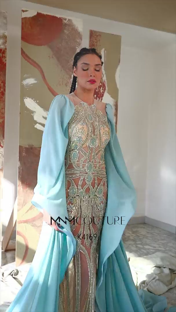 ارتقِ بحضورك مع فستان MNM Couture K4169، هذه التحفة من مجموعة المساء لربيع 2024 مصممة لتسحر في أروع المناسبات. يغمرك هذا الفستان الطويل والمناسب بحرفية دقيقة من الخرز، متألقًا مع كل خطوة، بينما تضيف أكمام الكاب الأنيقة لمسة من الأناقة الملكية. يمتد القطار الأنيق بتصميمه سيلويتك، مما يجعل بيانًا مذهلاً أثناء تحركك، مكملاً بسحاب خلفي محتشم يضمن مقاسًا مثاليًا. سواء كنت تحتفل بحدث كوتوري أو تكرمين لحظة عزيزة كأم العروس، يُحول هذا الفستان مساءك بأناقة خالدة وجاذبية مصقولة.