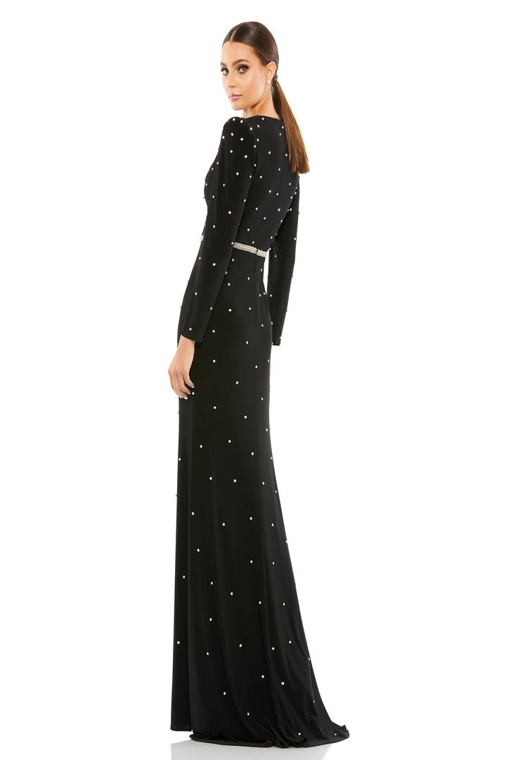 ارتق بمظهرك المسائي مع فستان Mac Duggal 67874، وهو فستان أنيق طويل مصنوع بدقة من البوليستر الناعم لينساب بانسيابية فوق قوامك. التصميم المناسب يحتضن منحنياتك بدقة، بينما يضفي العنق العميق المزين بخرزات معقدة نقطة براقة مذهلة تجذب كل نظرة. الأكمام الطويلة تضيف توازنًا أنيقًا، مكملة للأناقة الجريئة للسحابة الخلفية المكشوفة، التي تضفي حافة حديثة وسهولة حركة لا تضاهى. هذا الفستان تعبير رائع عن السحر المكرر، مصمم ليجعلك تشعرين بالثقة والتألق بشكل لا يقاوم خلال لياليك الأكثر لا تنسى.