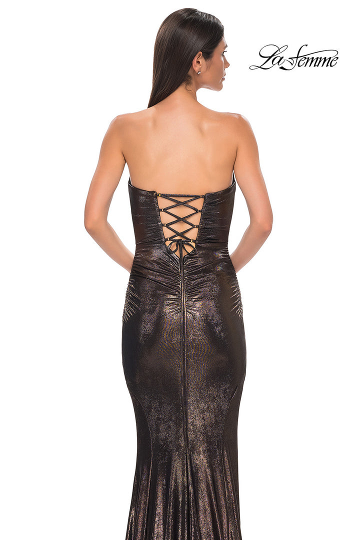 ادخلي إلى الأضواء مع لا فام 32995، إبداع مذهل من مجموعة الأمسيات لربيع 2025 بالمعادن المصقولة. يغمرك هذا الفستان الطويل المناسب بنسيج معدني لامع يلتقط الضوء مع كل حركة، متجسدًا النعومة والسحر. يحدد العنق القلبي الخالي من الحمالات بشكل أنيق منطقة الصدر العارية، بينما يضمن الظهر المشدود برباط الكورسيه مقاسًا مثاليًا ومنحوتًا مصممًا خصيصًا لكِ. تضيف الطيّة الطويلة للفستان لمسة درامية، مثالية لجعل دخولكِ لا يُنسى في أي حفلة تخرج أو مناسبة رسمية. اختبري الفن والحرفية الدقيقة التي تحوّل هذا الفستان إلى بيان دائم للأناقة والجاذبية.