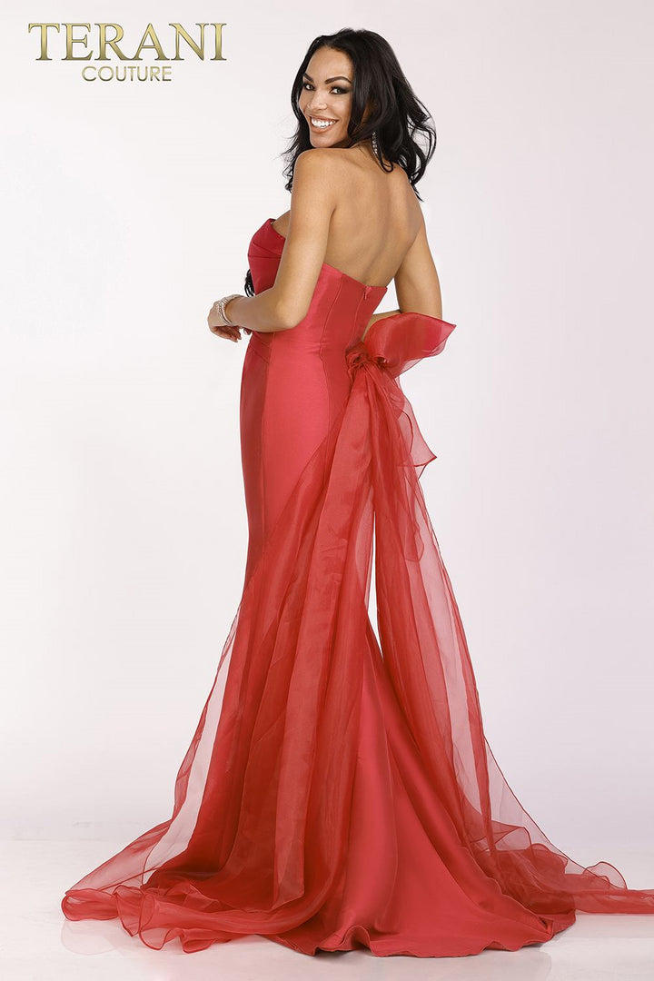 ارتقِ بسهرتك مع فستان Terani Couture 231P0108، وهو قطعة بقصة حورية البحر مذهلة مصنوعة من التفتة الفاخرة والأورجانزا الساحرة. يتميز هذا الفستان الطويل والخالي من الحمالات برقبة مربعة أنيقة تحدد بشكل جميل منطقة الصدر، بينما يتدفق الصدر المصمم بشكل ملائم بسلاسة إلى قطار درامي، مما يخلق وجودًا ساحرًا أثناء تحركك. تضيف الشقة المركزية الخفية لمسة عصرية إلى أناقتها الخالدة، مما يجعلها مثالية لإبهار الحضور في حفلة التخرج أو أي مناسبة ساحرة أخرى. بفضل الحرفية الدقيقة والسحاب الخلفي الأنيق، يعد هذا الفستان الفاخر وعدًا بالراحة والأناقة، مما يضمن أنك ستشعرين بالجمال تمامًا كما تبدين.
