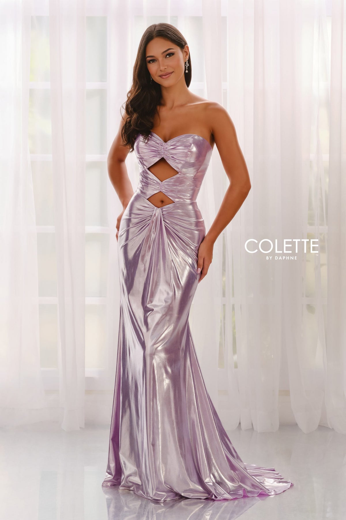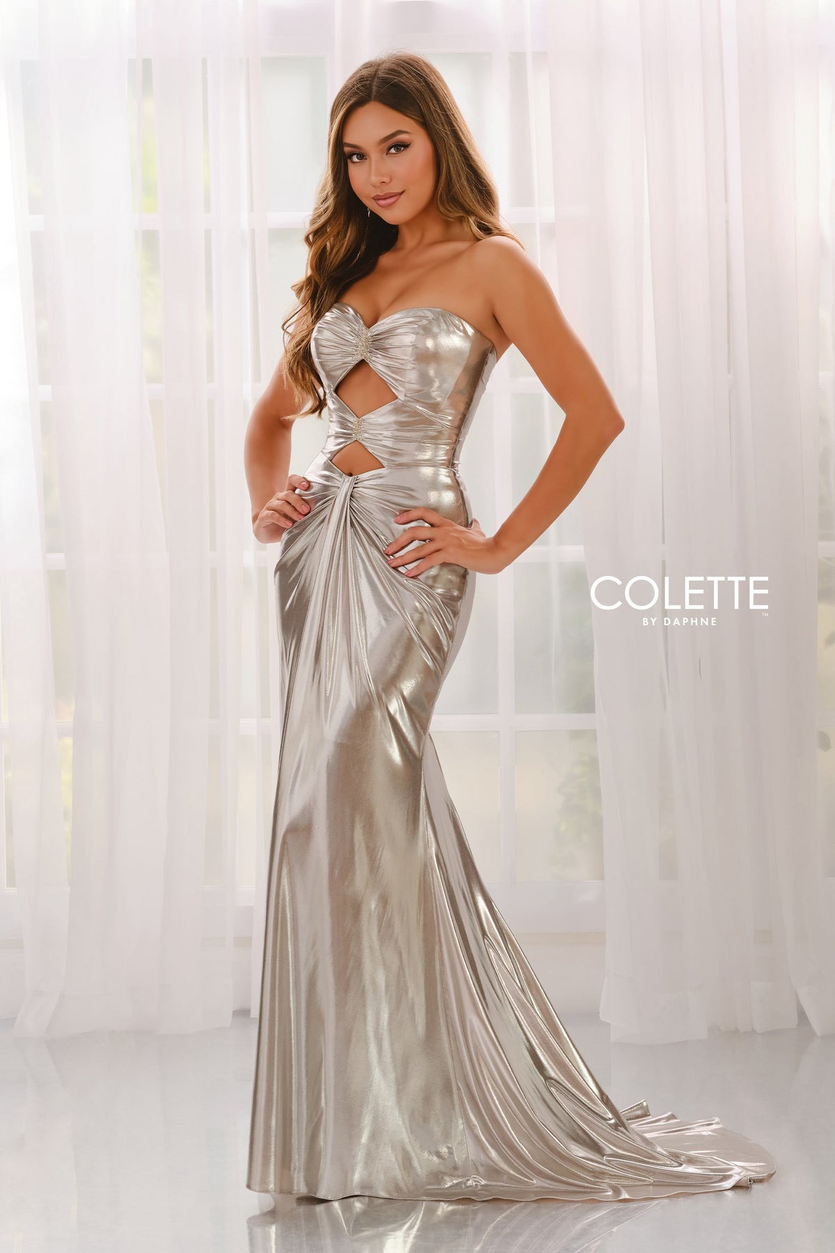 استمتع بسحر فستان السهرة Colette CL8545، وهو فستان مذهل مصنوع من القماش المعدني اللامع الذي يحتضن قوامك برقة. يتميز هذا التصميم المناسب وبدون أكمام بفتحة صدر جذابة على شكل قلب وأحزمة سباغيتي دقيقة، مما يتيح لك تخصيص مظهرك بسهولة. تلتقط الخرز المعقد والأحجار الزخرفية الضوء مع كل حركة، بينما يضيف القطع المتقن في الأمام والخلف لمسة جريئة وأنيقة. يتدفق الذيل الطويل خلفك، مجسدًا الأناقة الخالدة في كل حفلة موسيقية أو حدث رسمي. مع بطانة مطاطية ناعمة وسحاب خلفي آمن، يضمن هذا الفستان الراحة والثقة طوال ليلتك اللا تنسى.