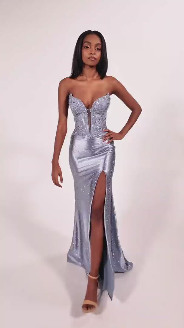 فستان كووليت CL6009 من قماش السترتش المحبوك، مزين بحجارة حجرية، تطريز دانتيل، خرز، وترتر، فستان حفلات ربيع 2026.