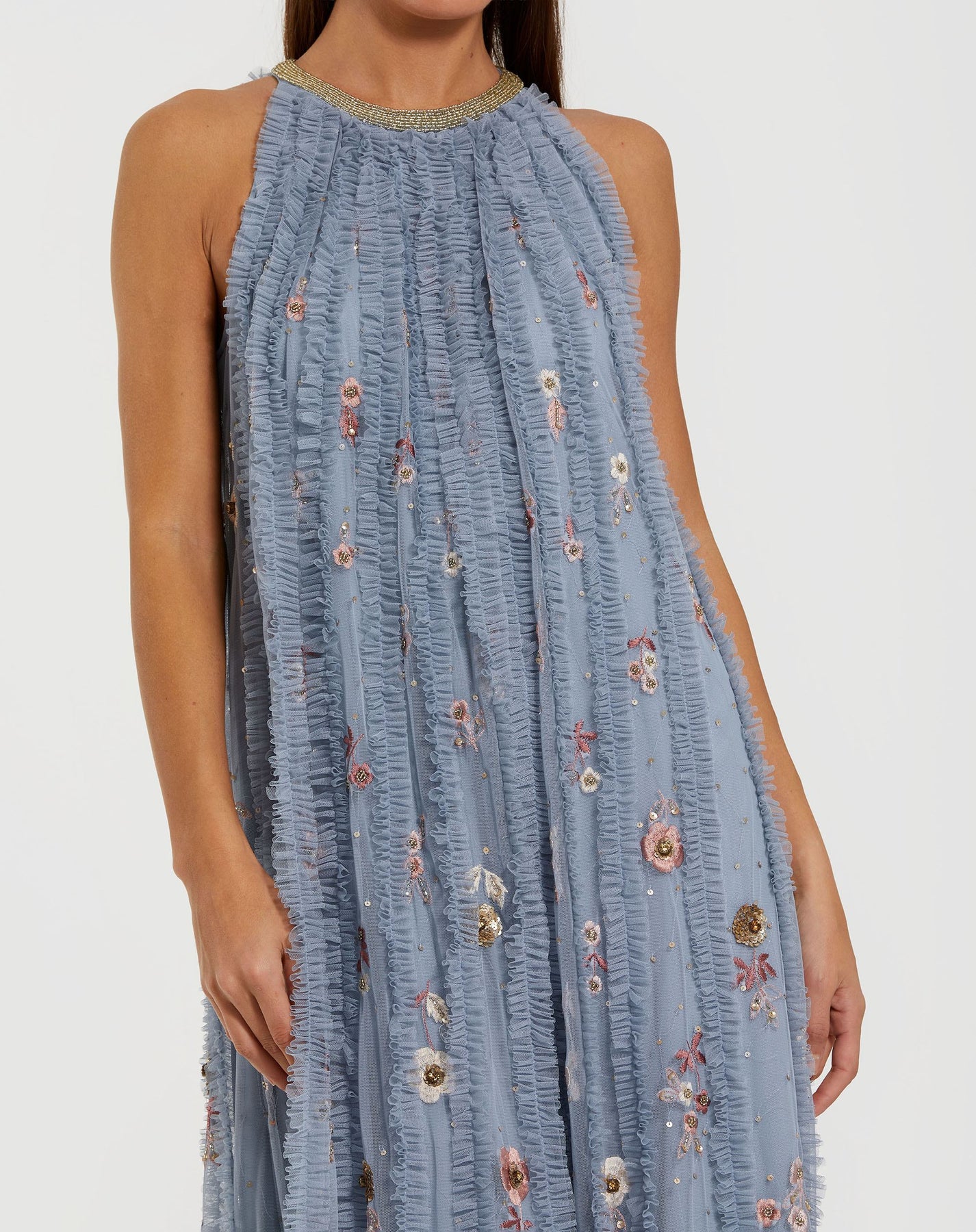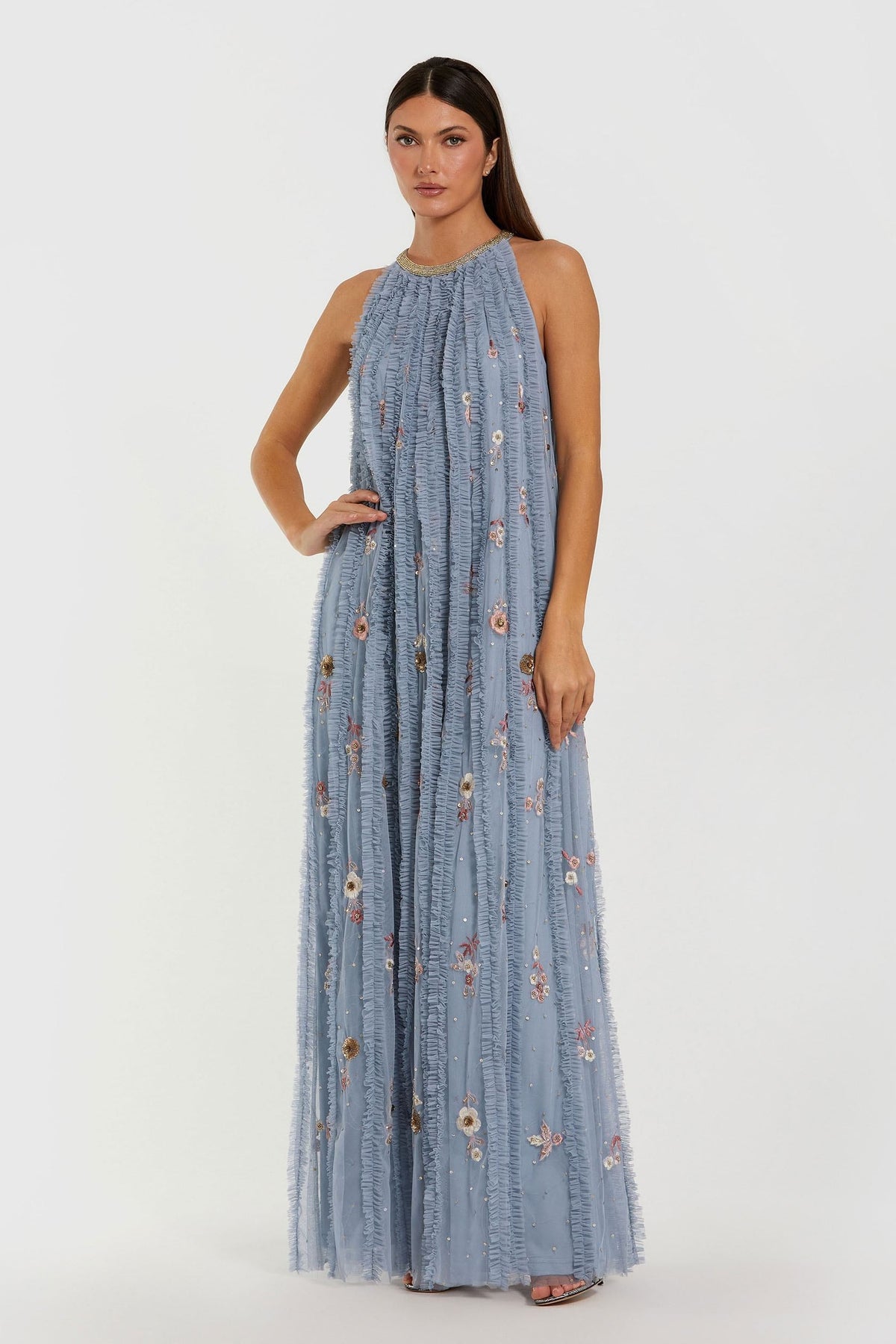 ادخلي عالم الأناقة مع فستان ماك دوجال 9413، تحفة فنية مذهلة مصنوعة من الشيفون الفاخر. مزين بتطريزات دقيقة وتجمّعات ناعمة، ينسدل هذا الفستان بطول الأرضية وبقصّة A-line بأناقة على قوامك، ليخلق جاذبية ساحرة. يبرز ياقة الهالتر كتفيك، بينما يضمن السحاب الخلفي الرائع ملاءمة مثالية. مثالي للسهرات المسائية، حفلات التخرج، أو كزيّ مثالي لأم العروس، يحول هذا الفستان أي مناسبة إلى احتفال بالذوق الرفيع والأناقة. استمتعي بسحر الجاذبية ودعي حضورك لا يُنسى.