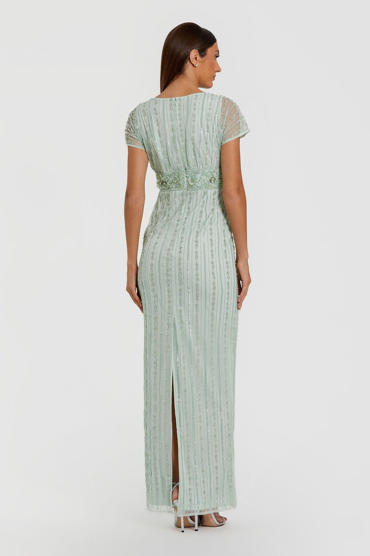 ارتقِ بأناقتك المسائية مع فستان ماك دوجال 94147، مزيج متناغم من الرقي والجاذبية. مصنوع من الشيفون الفاخر والحرير، يتميز هذا التحفة الفنية بطول الأرضية بتطريزات دقيقة وتطريزات متقنة تتلألأ مع كل حركة. تبرز الأكمام القصيرة وياقة القارب الوجه بشكل جميل، بينما يلتف التصميم الضيق المصمم باحتراف حول منحنياتك، مما يخلق مظهراً ساحراً. يضمن السحاب الخلفي المصقول ملاءمة مثالية، مما يجعله الخيار الأمثل للمناسبات الرسمية، بما في ذلك الحفلات الكبرى وحفلات الزفاف. ادخلي عالم السحر، حيث يهمس كل تفصيل بالرقي.