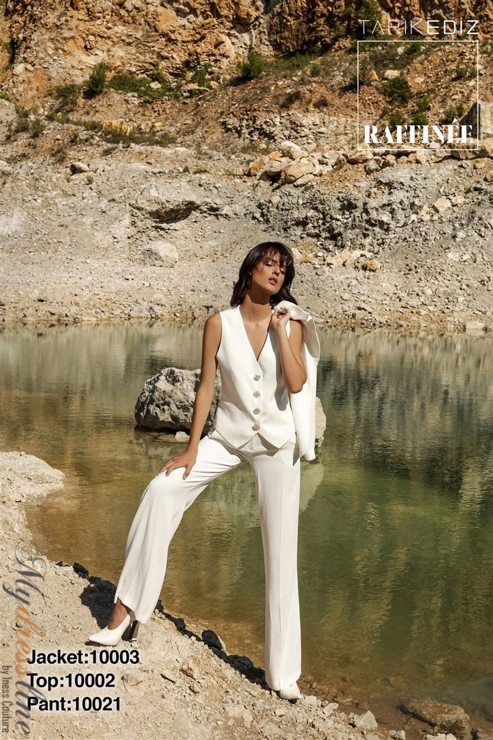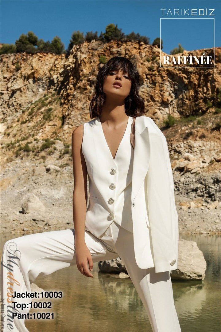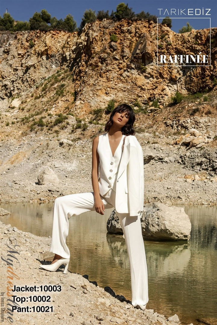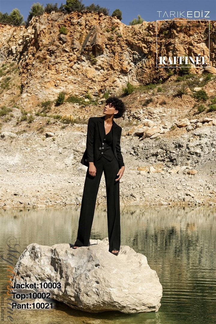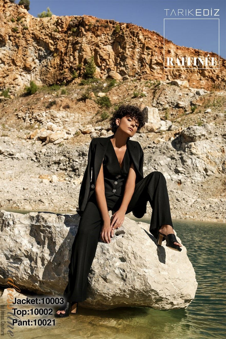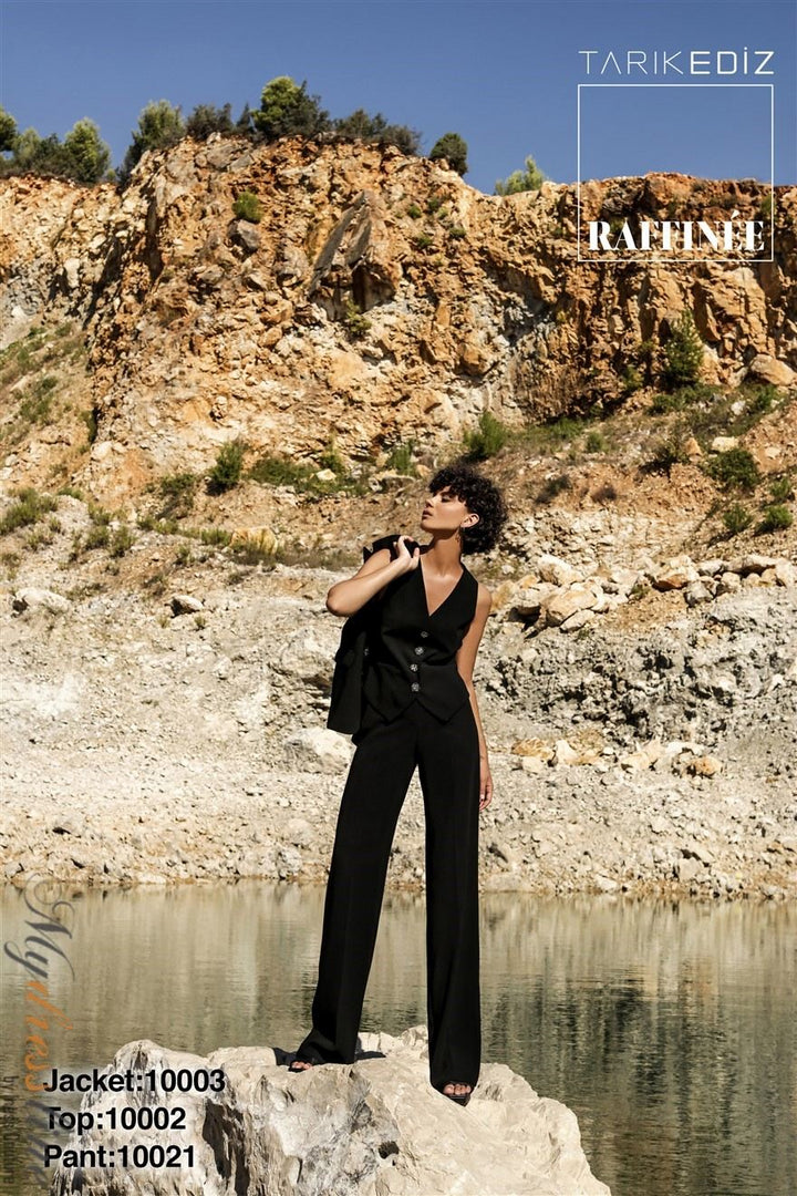 ادخل إلى الأضواء مع Tarik Ediz 10002، مزيج ماهر من الأناقة والتطور الحديث. مصنوع من التفتة الفاخرة، يغمرك هذا البدلة المسائية المكونة من قطعتين بقمة أنيقة برقبة V بلا أكمام مقترنة بسراويل مصممة بدقة تتميز بأزرار كلاسيكية وظهر مغلق مصقول. يلتقط النسيج الفاخر الضوء مع كل حركة، مما يخلق قوامًا أنيقًا ينبعث منه الثقة والكرامة. مصممة للسهرات التي لا تُنسى، تحول هذه البدلة المناسبات الرسمية إلى منصة عرضك الشخصية، مقدمةً إطلالة محكمة زمنية تضمن لك ترك انطباع دائم أينما ذهبت.
