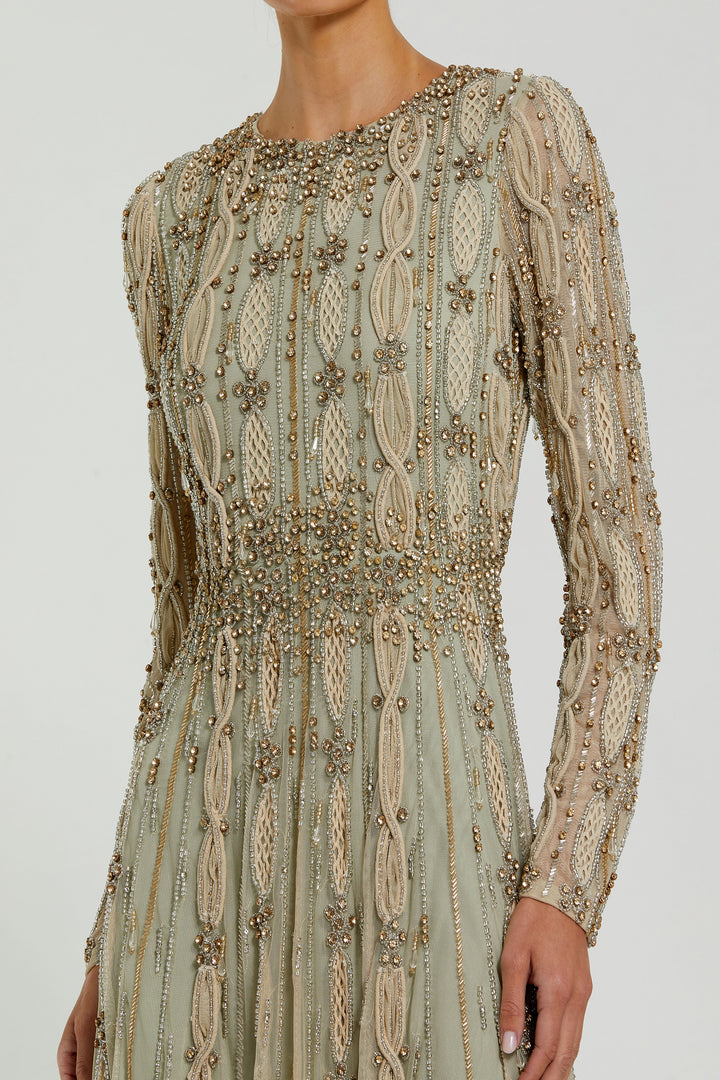 ارتقِ بحضورك المسائي مع فستان ماك دوغال 10077 من مجموعة مساء ربيع 2025. مصنوع من التول الناعم، يغلف هذا الفستان الطويل بقصة A-line جسدك بكسوة من الثنيات الأنيقة التي تبرز كل منحنى بشكل طبيعي، مصمم خصيصًا ليمنحك مظهرًا راقيًا. يوفر الياقة العالية التقليدية والأكمام الطويلة إطارًا أنيقًا ومت refined، بينما يضمن السحاب الخلفي المت discrete ملاءمة مثالية. سواء كنتِ مُكرمة كأم العروس أو تحضرين حفلة ضخمة، يعد هذا الفستان الفاخر بترك انطباع دائم، مما يتيح لك التحرك بثقة ورشاقة طوال الليل. تجربة الفن والراحة متوازنة بشكل مثالي في هذه القطعة البارزة.