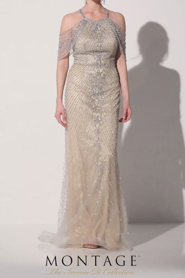 ادخلي عالم الأناقة مع فستان السهرة المذهل Ivonne D 220D35 من Ivonne D، الذي صمم ليسحر الألباب. مصنوع من تول رقيق، يتميز هذا الفستان بأكمام منسدلة عن الكتف تتميز بتطريزات لامعة رائعة تتألق مع كل حركة، مما يخلق أجواء ساحرة. يزين الرقبة الهالتر الأنيقة قوامك بأناقة، مكملاً بأكمام قصيرة تضيف لمسة راقية. سحاب الظهر الخفي يضمن مقاسًا مثاليًا، مما يتيح لك التحرك بثقة في أي مناسبة رسمية أو احتفال بعروس الأم. اختبري جاذبية ورومانسية هذا الفستان الطويل، الذي يحولك إلى رؤية لا تُنسى من الجمال الخالد.