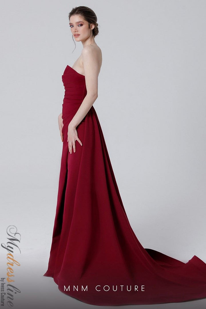 ادخلي إلى الأناقة مع فستان MNM Couture N0464، هذه التحفة المصممة لرفع سهراتك الأكثر تذكرًا. مصنوع من قماش الكريب الفاخر، ينحت هذا الفستان الأنيق بدون حمالات قوامك بسهولة من خلال الصدر المجسم والتصميم الأنيق بشكل حورية البحر، مما ينبعث منه الأناقة المصقولة. السحاب الأملس في الظهر يضمن مقاسًا مصممًا، بينما الذيل الطويل والشق الجانبي الجريء يضيفان لمسة من الجاذبية الجريئة. مناسب تمامًا للأم العروس أو المناسبات الكبرى، يعد هذا الفستان الفاخر بأنك ستسحرين كل غرفة بأناقتك وكرامتك الخالدة، مما يجعل وجودك لا يُنسى.