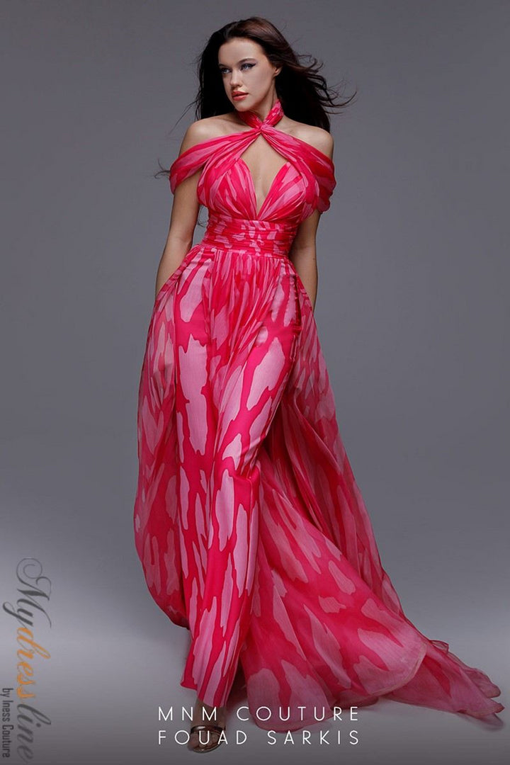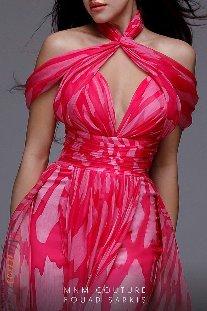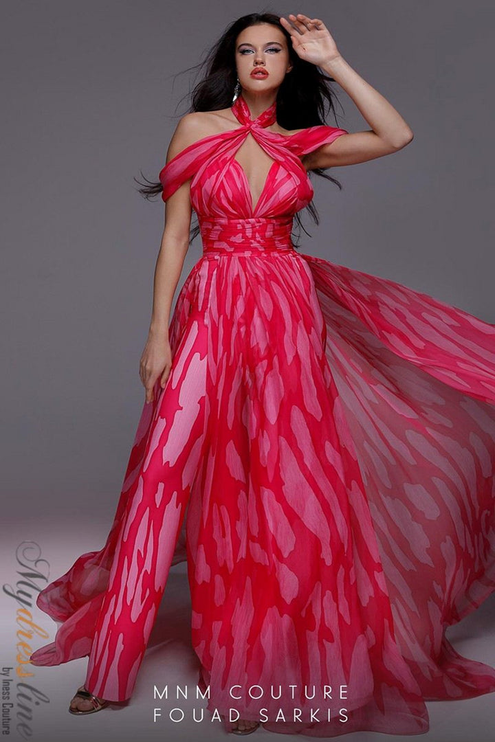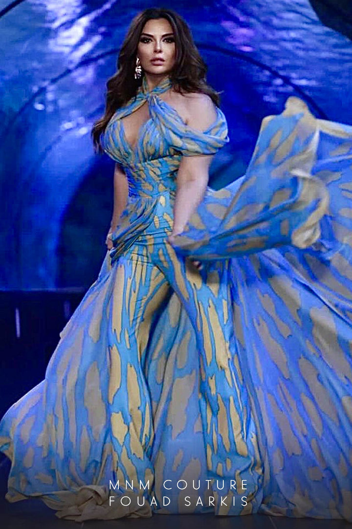 ادخل إلى عالم الأناقة الرفيعة مع بدلة MNM Couture 2734. مصنوعة من الشيفون الرقيق، تنسدل هذه الشاهدة بسهولة فوق قوامك، عنقها المكشوف يتزامن مع ياقة عالية متطورة لخلق إطار ساحر حول منطقة الصدر. تنسدل التنورة الفاخرة بشكل دراماتيكي بأناقة، مضيفة طبقة من الفخامة والحركة التي تأسر من كل زاوية. مصممة بسحاب خلفي كامل الطول لمقاس ملائم، تحوّل هذه القطعة الأنيقة مساءك إلى بيان لا يُنسى من الأناقة والرشاقة. تقبل جاذبية الحرفية الفاخرة التي ترفع وجودك بلمسة من السحر البسيط والأناقة الخالدة.