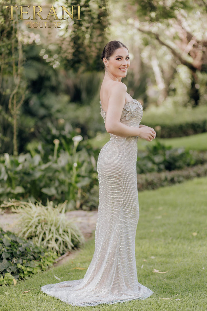 ارتقِ بأناقتك المسائية مع فستان Terani Couture 232GL1457، الذي يتميز بقصة عمودية مذهلة تنحت قوامك بسهولة بفضل نسيجه الشبكي المصمم بدقة. مصمم لتلك المناسبات التي لا تُنسى، يتميز هذا الفستان الطويل برقبة واحدة أنيقة وذيل زهري رقيق يتبع بجمال رفيع. النمط الخالي من الحمالات وسحاب الظهر الخفي يضمنان مقاسًا سلسًا، مما يتيح لك التحرك بثقة وكرامة. مثالي للحظات ترغب فيها في ترك انطباع يدوم، يمزج هذا الفستان بين الحرفية الراقية والحدة الحديثة، مما يجعل كل ظهور لك لا يقل عن استثنائي. اختبر الفخامة الجديدة بتصميمات Terani Couture.