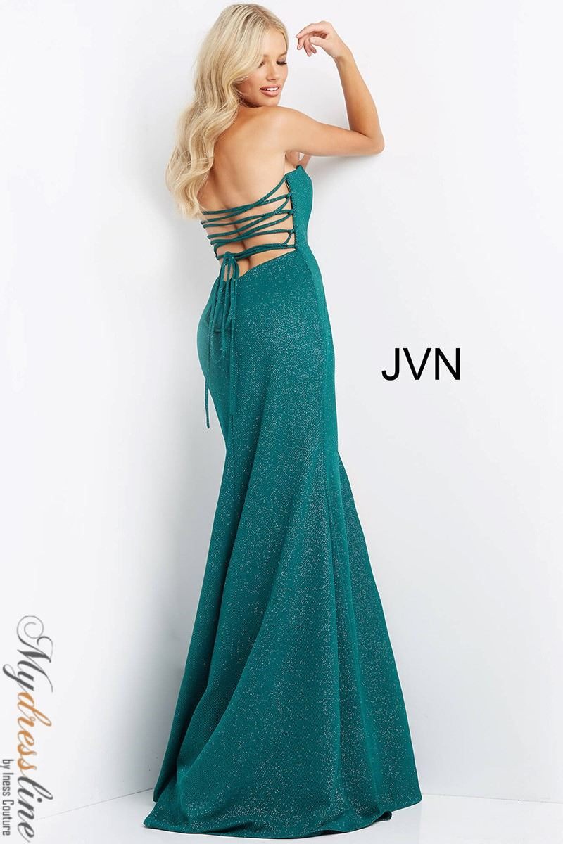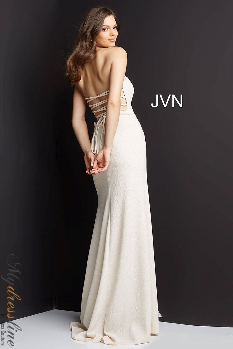 Step into pure sophistication with the Jovani JVN08510, a masterpiece designed to elevate your evening or prom experience. This long, fitted column gown combines the smooth elegance of jersey fabric with shimmering metallic accents that catch the light with every movement. The strapless sweetheart neckline frames your décolletage beautifully, while the corset lace-up back ensures a tailored, flawless fit that enhances your natural curves. A daring slit adds a touch of sultry allure, allowing you to move with confidence and grace. Jovani’s expert craftsmanship transforms you into the embodiment of glamour, making every occasion unforgettable.