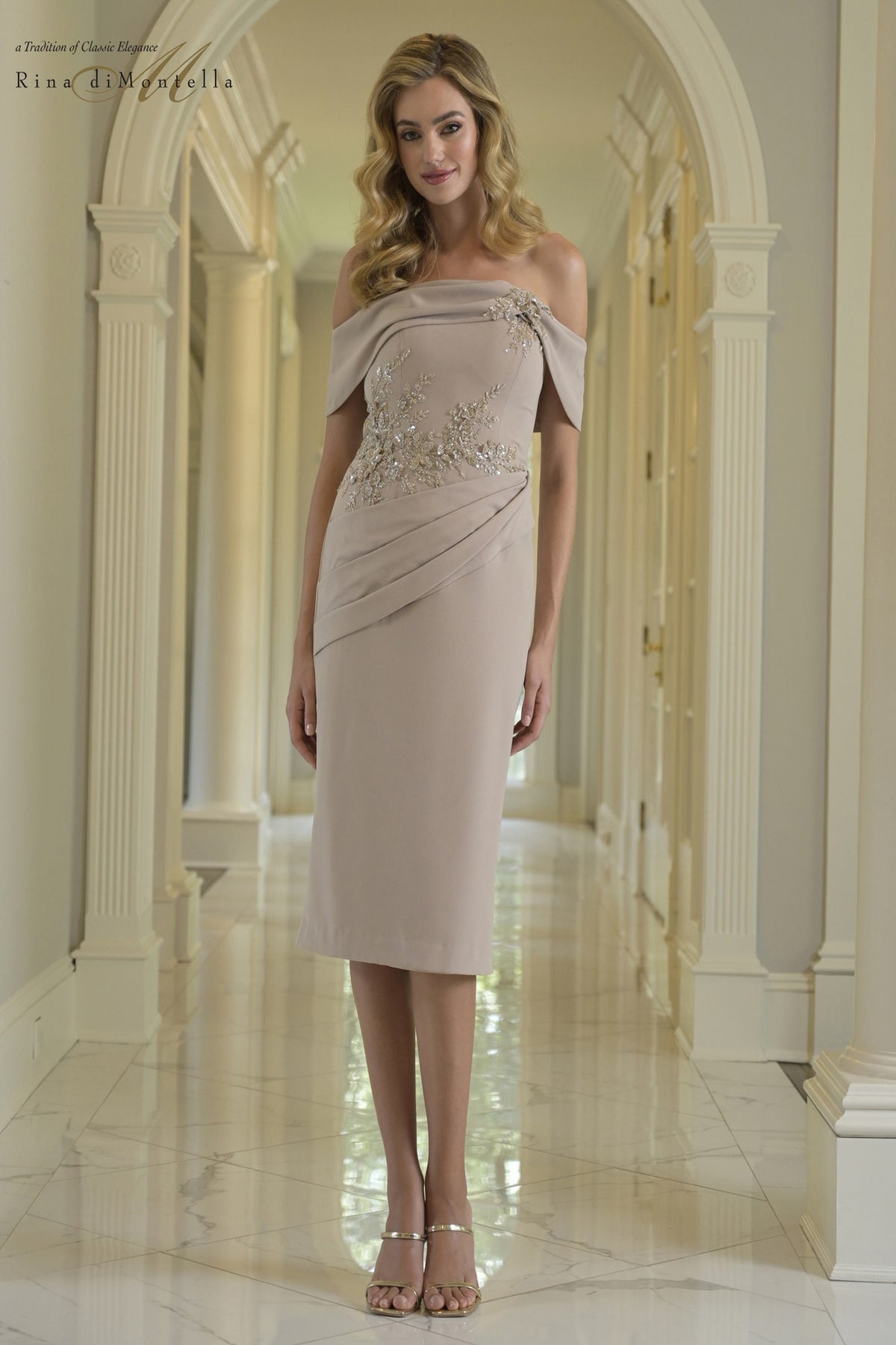 Elevate your evening with the exquisite Rina Di Montella RD242, a stunning cocktail dress designed for the confident woman who embraces her curves. Crafted from luxurious crepe, this fitted masterpiece offers a soft texture that gently caresses your skin. The strategic ruching accentuates your silhouette, ensuring you feel both glamorous and secure as you dance the night away. The knee-length cut complements a range of body types, while the strapless and off-the-shoulder neckline exudes a captivating elegance. Finished with a discreet zipper at the back, this dress embodies both sophistication and functionality, making it the ultimate choice for memorable soirées. Embrace your style and let the Rina Di Montella RD242 transform your next occasion into a fashion moment.