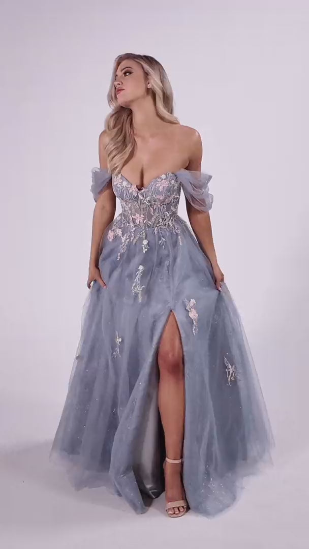 Step into an evening of enchantment with the Colette CL8150 by Andrea and Leo. This long A-line gown embodies sophistication through its delicate tulle fabric adorned with intricate lace appliques and shimmering accent stones that catch the light with every movement. The corset bodice, featuring a lace-up back, sculpts your silhouette to perfection while the sweetheart neckline and detachable off-the-shoulder tulle straps offer versatile elegance. A subtle slit adds a modern edge, revealing just the right amount of allure beneath the satin-lined layers. Designed for those who cherish impeccable craftsmanship and graceful charm, this gown transforms prom or evening events into unforgettable celebrations of style.