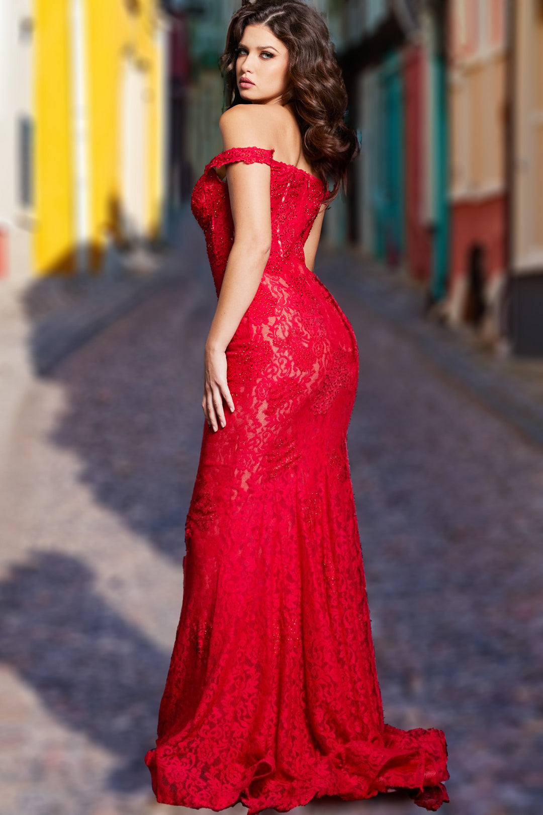 Step into the spotlight with the Jovani 07414, a masterful creation designed to elevate your evening presence. Crafted from delicate lace, this mermaid-style dress contours your silhouette with an elegant corset, enhancing your natural grace. The off-the-shoulder sweetheart neckline adds a touch of romantic allure, while the dramatic train flows behind you, making every movement unforgettable. Perfect for sophisticated evenings or as a distinguished mother of the bride gown, Jovani’s meticulous craftsmanship and luxurious fabric envelop you in timeless beauty, ensuring you attract admiring glances and feel effortlessly stunning throughout your special occasion.