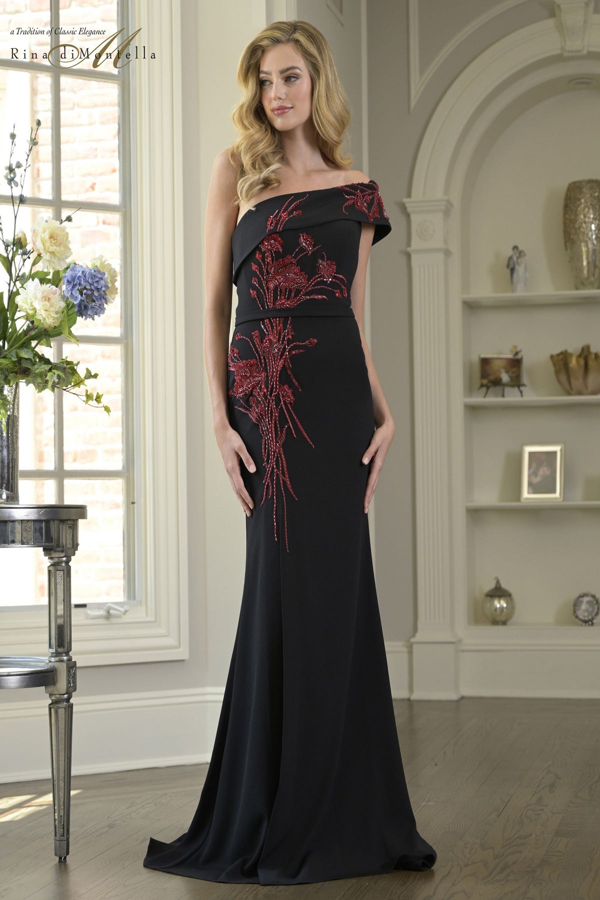 Elevate your evening ensemble with the Rina Di Montella RD3203, a masterpiece that effortlessly blends sophistication and grace. Crafted from sumptuous crepe, this fitted gown embraces your silhouette with a sleek, smooth texture that moves elegantly throughout the night. The delicate embroidery adds an exquisite layer of artistry, creating a captivating interplay of light and detail. Designed with a striking one-shoulder neckline and sleeveless cut, it highlights your décolletage while offering a contemporary silhouette. Perfect for unforgettable occasions, the long length and discreet zipper back ensure both comfort and flawless fit, allowing you to radiate confidence and timeless beauty.
