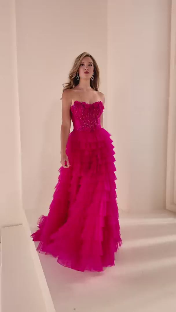 Ellie Wilde EW37026 Tulle, Beading, Stone Accents, Three-Dimensional Organza Flowers Spring 2026 Prom dress.