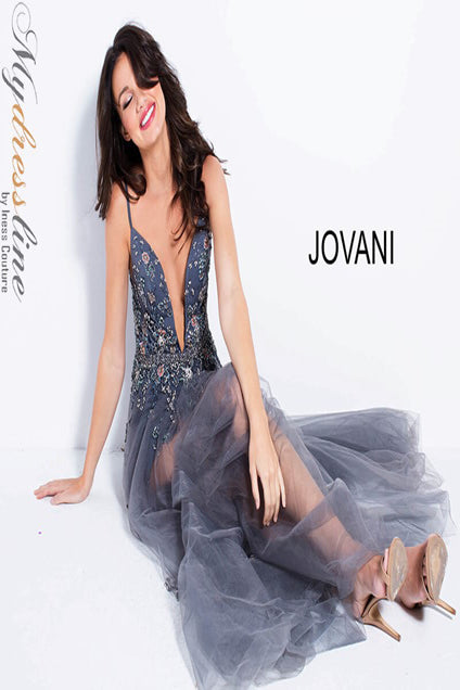 Step into a world of refined glamour with the Jovani 55621, a breathtaking A-line gown crafted in delicate tulle that caresses your silhouette with ethereal softness. Embroidered with intricate artistry, this long dress captivates from every angle, enhanced by a plunging V-neckline and slender straps that elevate its seductive appeal. The low back design adds an alluring touch, perfect for making a memorable entrance at prom or elegant evenings. Experience the seamless blend of sophistication and grace as this masterpiece from Jovani transforms your special occasion into an unforgettable celebration of style.