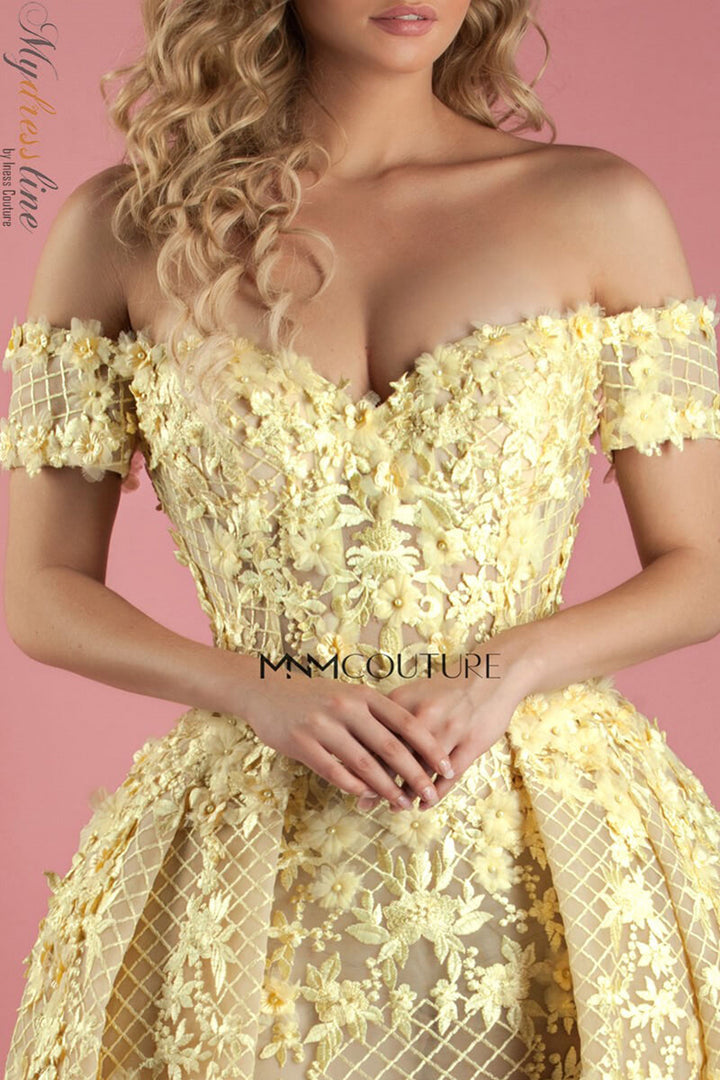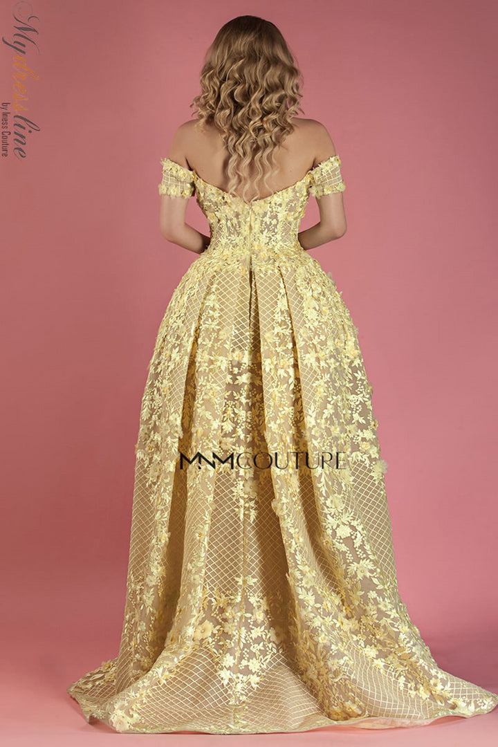 Step into the spotlight with the MNM Couture K3496, a masterfully crafted evening gown designed to elevate your presence. This off-the-shoulder A-line silhouette embraces you with a flattering corset fit, accentuating your curves effortlessly. Luxurious embroidery adorns the fabric, while a delicate flower embellishment and elegant overskirt add depth and romantic allure. The sweetheart neckline complements your décolletage with grace, and the long flowing skirt moves with a captivating fluidity. Perfect for grand occasions or as a mother of the bride dress, this exquisite piece ensures you radiate confidence and timeless elegance throughout the evening.