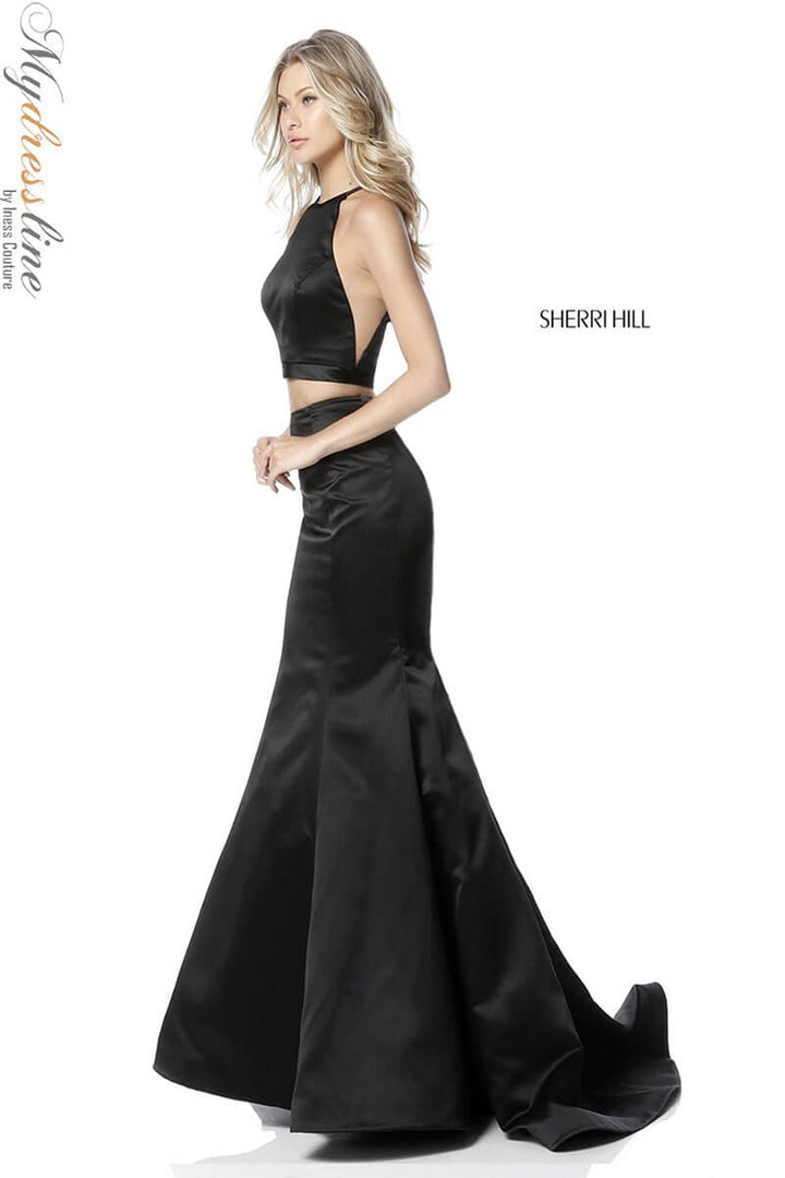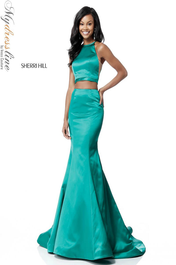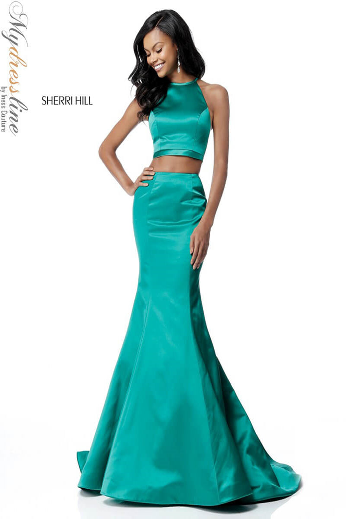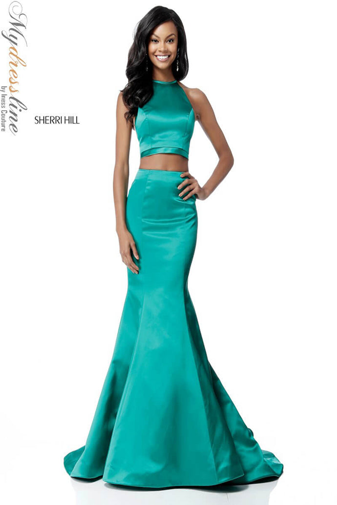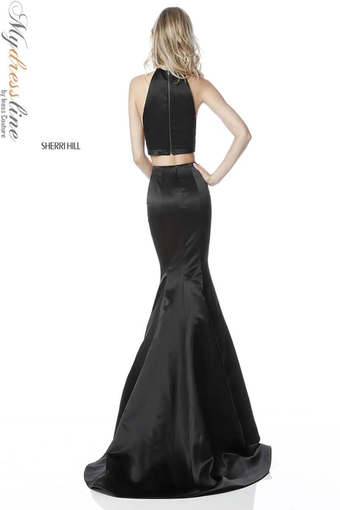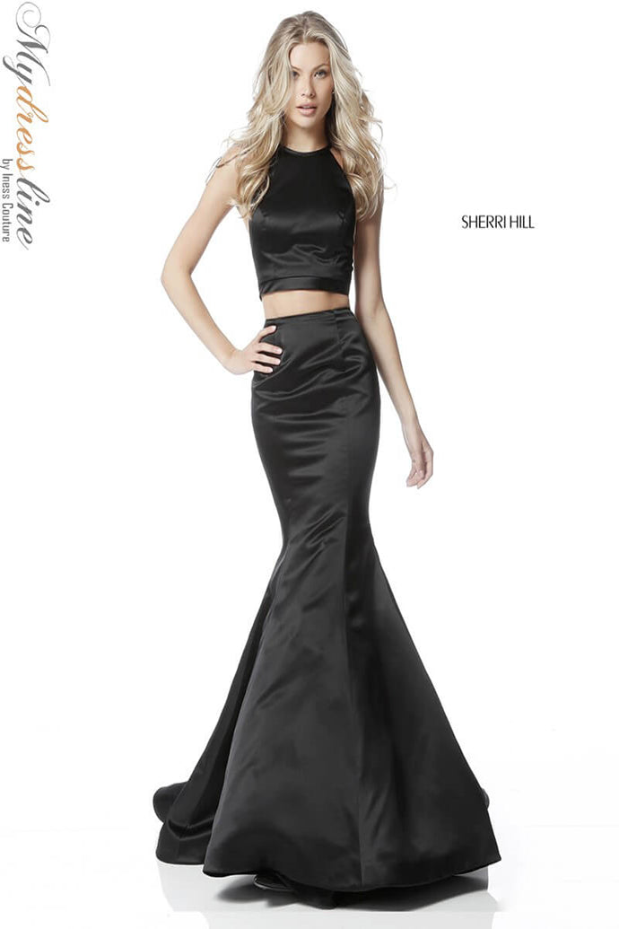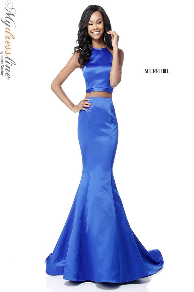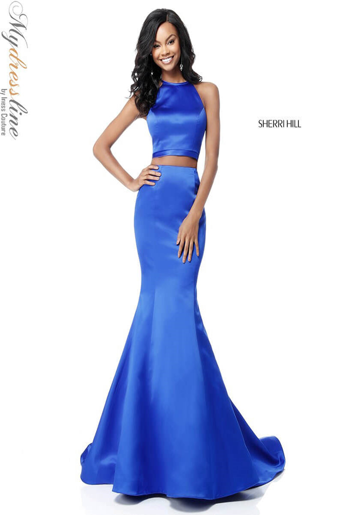 Elevate your presence with the Sherri Hill 51585, a stunning two-piece satin prom dress designed to captivate. Crafted from lustrous satin, this long, trumpet A-line gown elegantly contours your figure while its flowing train adds a regal touch. The sleeveless cut paired with a high neckline creates a refined silhouette that enhances your poise, while the discreet zipper back ensures a flawless fit. Perfectly balancing modern sophistication and timeless glamour, this design invites you to step into the spotlight with the confidence of a queen. Experience the allure and craftsmanship that make Sherri Hill a hallmark of unforgettable eveningwear.