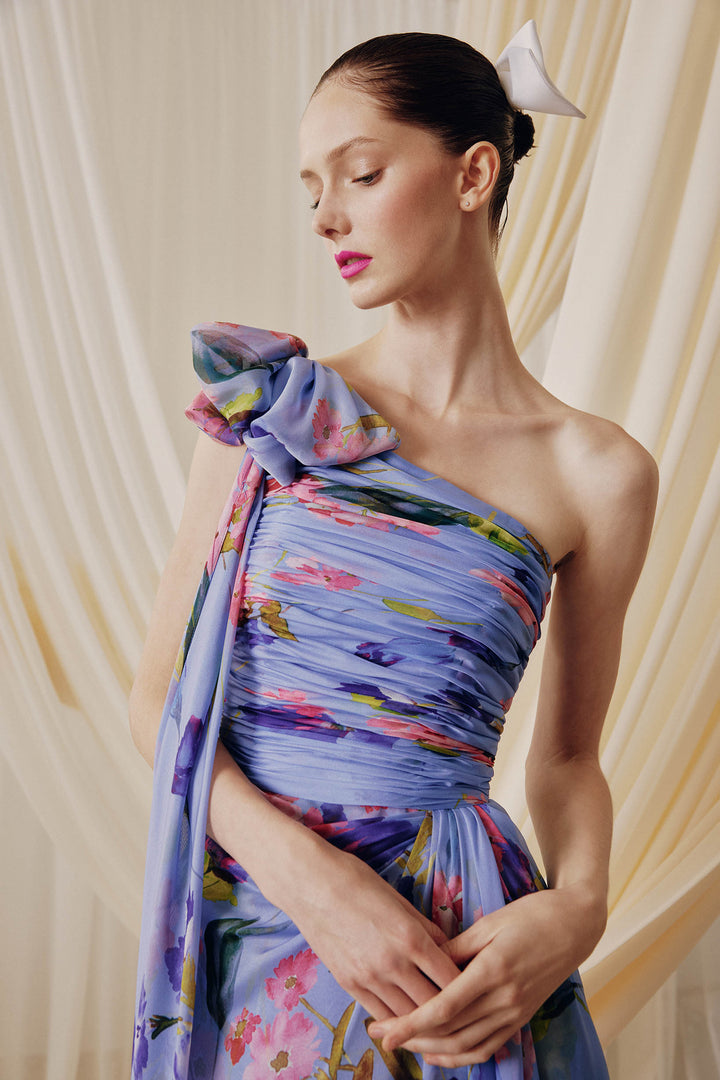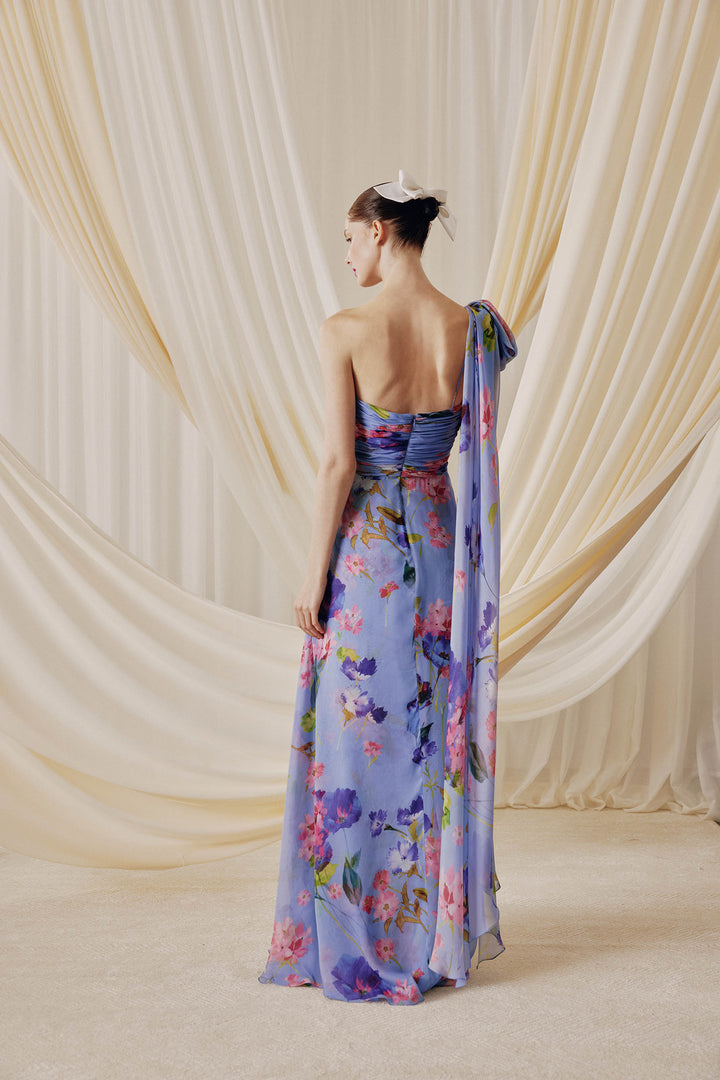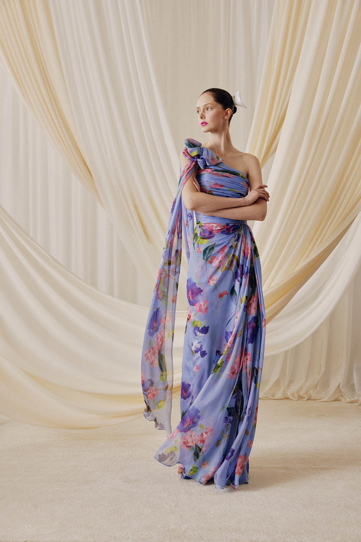 Step into refined elegance with the Audrey+Brooks 6846, a stunning couture evening dress designed to elevate your most memorable occasions. Crafted from flowing chiffon, this fitted gown features a beautifully draped bodice and an asymmetrical one-shoulder neckline that gracefully contours your silhouette. The delicate floral details and a subtle back train add an enchanting touch, while the satin lining ensures flawless comfort. Perfectly tailored with a discreet back zipper, this long, sleeveless dress offers an effortlessly sophisticated presence for the mother of the bride or any luxurious affair. Experience the harmony of artistry and style with a gown that truly defines timeless glamour.