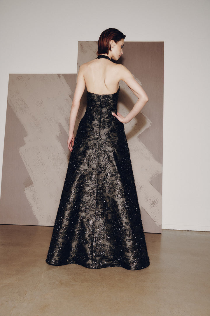 Step into elegance with the Audrey+Brooks 6905 gown, a breathtaking masterpiece tailored for unforgettable occasions. Crafted from luxurious jacquard, this A-line silhouette features a mesmerizing halter neckline that gracefully frames your shoulders. The enchanting deep V-neckline leads to a stunning bow belt at the waist, accentuating your figure while adding a touch of whimsy. With its long, flowing length and a detachable train, you’ll feel like royalty as you glide through any event. The sleek back zipper provides ease and sophistication, ensuring you achieve a flawless look. Elevate your wardrobe with this gown, perfect for couture evenings or as a splendid Mother of the Bride option, embodying timeless style and exquisite craftsmanship.
