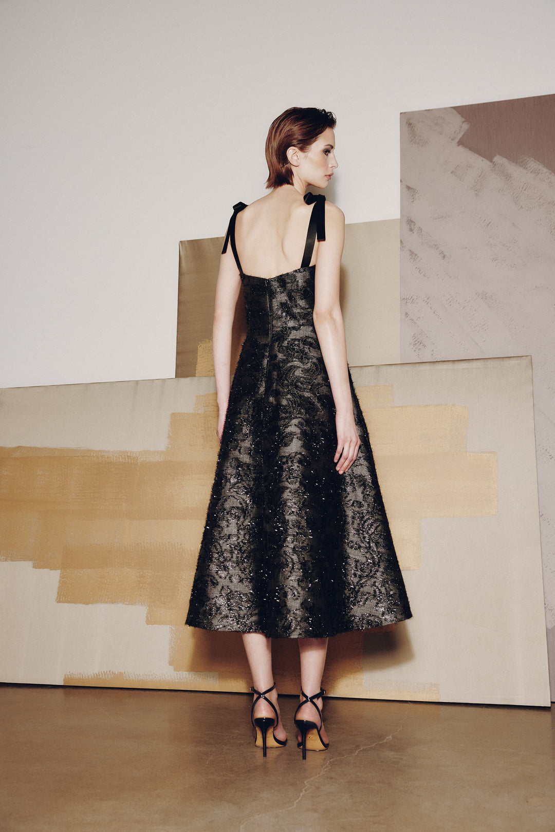 Step into elegance with the Audrey+Brooks 6906 Midi Gown, a stunning choice for your next cocktail or couture event. Crafted from luxurious jacquard, this dress features a fit and flare silhouette that gracefully accentuates your curves, while the square neckline and delicate strap design provide a touch of modern sophistication. The captivating bowknot detail adds a playful yet refined element, creating an enchanting focal point. As you glide through the evening, the full midi skirt with crinoline offers a voluminous flow, making each movement a dance of luxe fabric. Complete with an exposed zipper at the back, this gown ensures a perfect fit and effortless style, embodying the essence of timeless glamour.