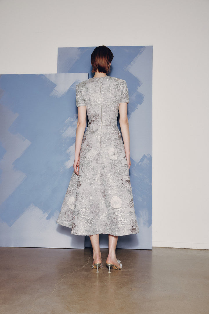 Indulge in the exquisite beauty of the Audrey+Brooks 6915 Midi Dress, a stunning blend of sophistication and allure, perfect for your next cocktail affair. Crafted from luxurious jacquard, this dress features an enchanting A-Line silhouette complemented by a fit-and-flare design that gracefully hugs your figure. The soft V-neckline and short sleeves add a touch of modern elegance, while the corset bodice with a striking front slit elevates your allure. As you twirl, the satin-lined skirt flows elegantly, enhanced by a delicate crinoline that creates movement and depth. Step into the spotlight with confidence, knowing you are draped in an embodiment of refined style and luxury.