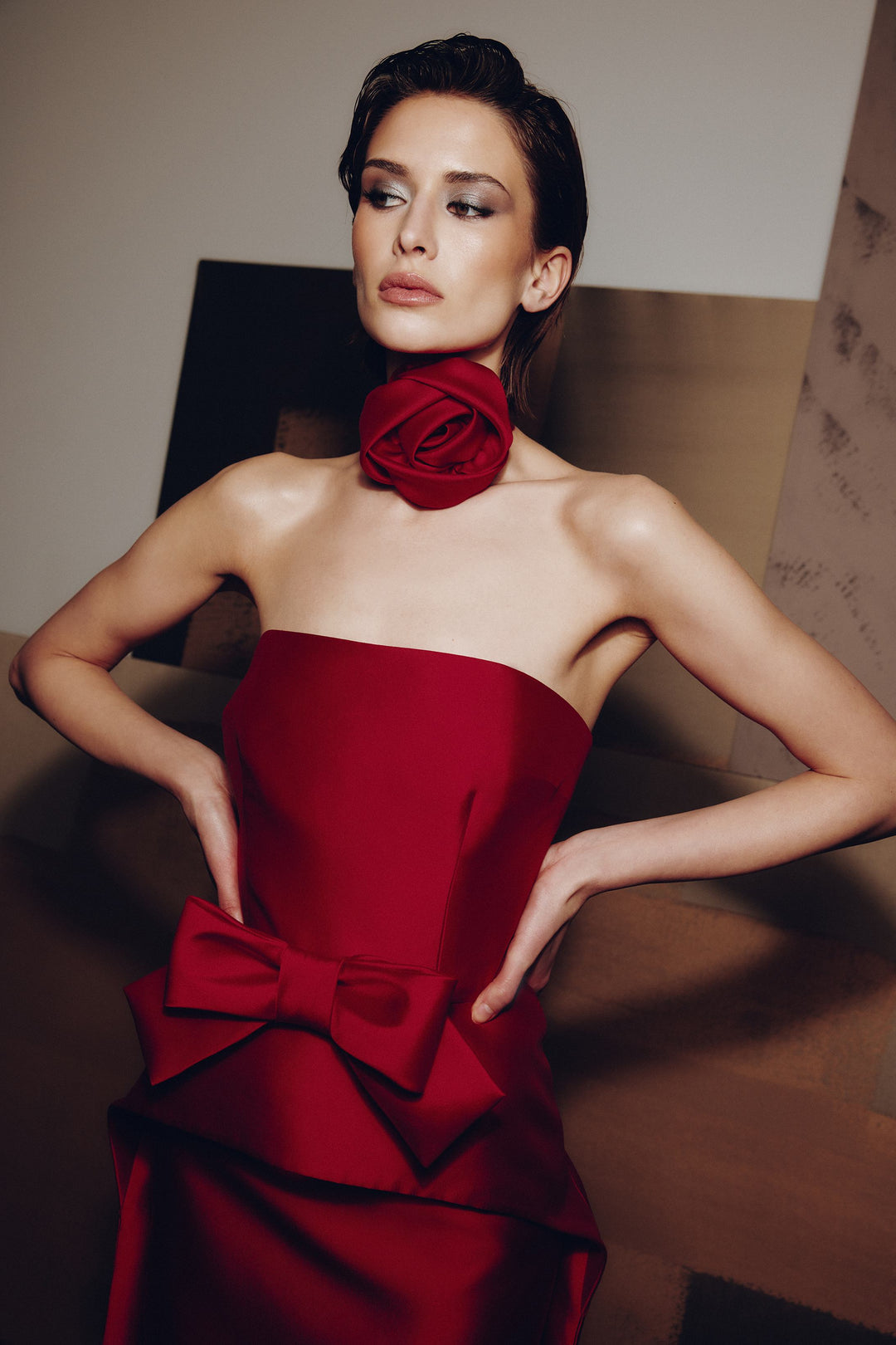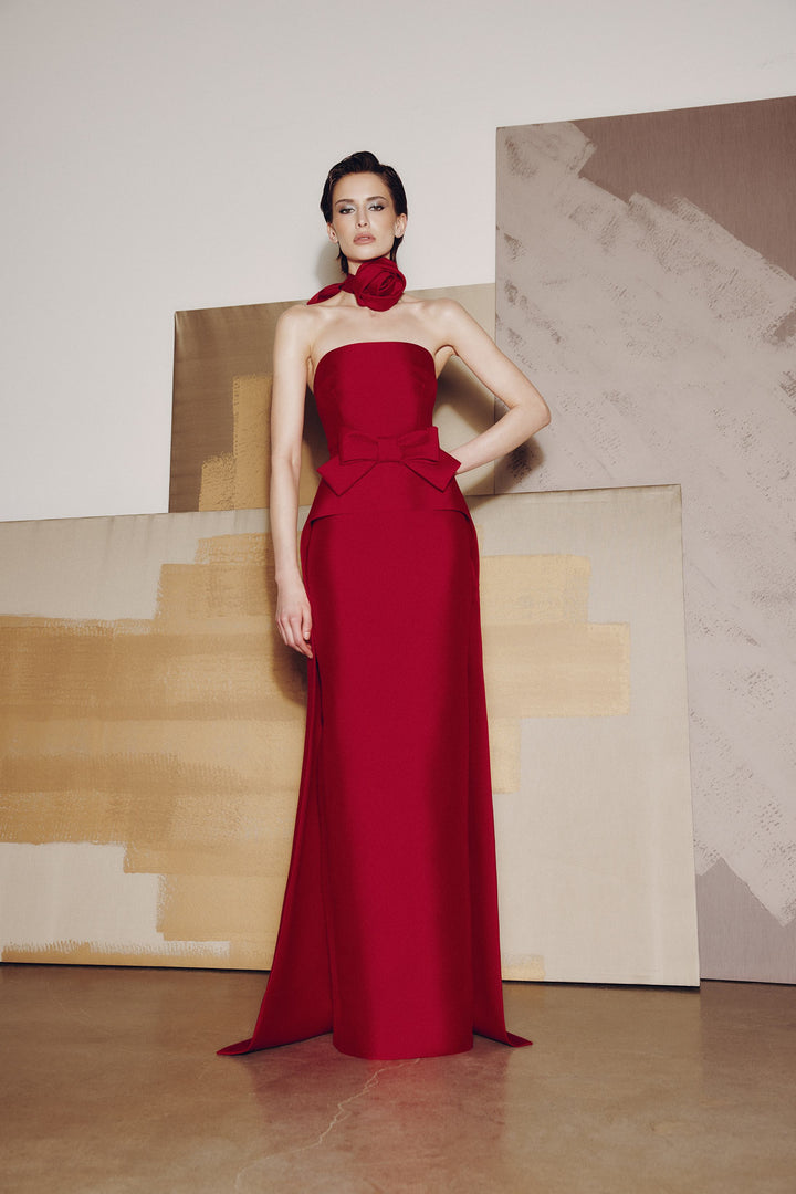 Introducing the Audrey+Brooks 6920, a masterpiece that defines elegance and sophistication. This stunning strapless gown features a beautifully sculpted bodice adorned with a chic bow, seamlessly transitioning into a flowing column skirt that is both figure-flattering and exquisite. The subtle front peplum adds a touch of modern flair, while the alluring back slit invites graceful movement as you glide through any event. Lined with satin for ultimate comfort, the gown's hidden back zipper ensures a sleek fit. Embrace your inner icon and captivate every room, knowing you’re wrapped in exquisite craftsmanship and luxury that stands out effortlessly.
