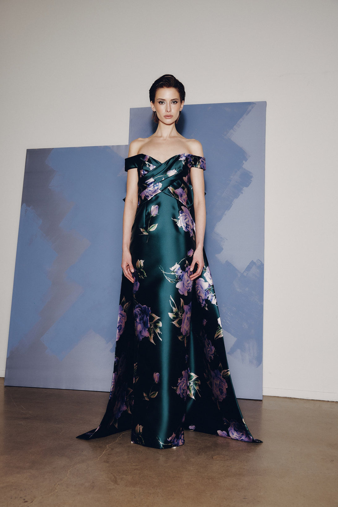 Introducing the Audrey+Brooks 6924, a stunning evening gown designed for those who appreciate the art of luxury. This exquisite dress features a sweetheart neckline and off-the-shoulder silhouette, accentuating your elegance while providing a touch of sophistication. The fitted Mikado material beautifully hugs your figure before cascading into a graceful column skirt, complete with a dramatic back slit that adds an alluring flair. Its draped bodice, adorned with a charming back bow, creates a captivating focal point, making it a perfect choice for special occasions, including couture events or as a statement piece for mothers of the bride. With a hidden back zipper and a lavish detachable overskirt, you have the versatility to adapt your look effortlessly throughout the evening. Elevate your wardrobe and experience the timeless luxury of the Audrey+Brooks 6924.