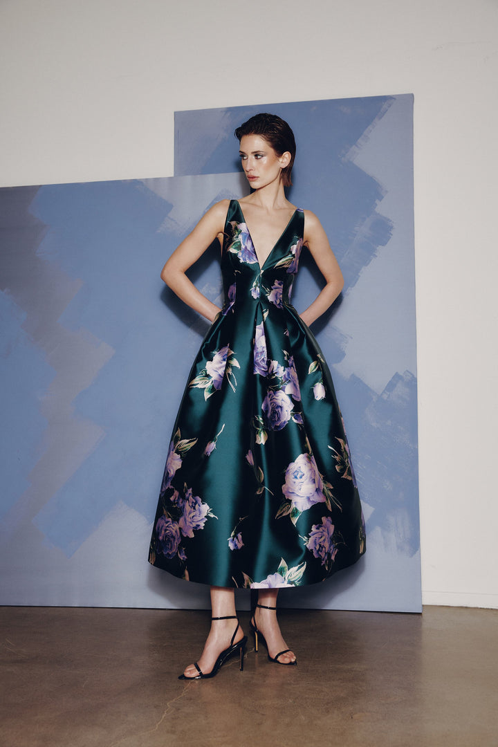Step into the spotlight with the Audrey+Brooks 6926, a luxurious midi dress designed to elevate your cocktail and couture occasions. Crafted from high-quality Mikado, this exquisite piece features a deep V-neckline and elegantly pleated bodice that flatters your figure while providing unparalleled comfort. The fit and flare silhouette accentuates your curves, and a full skirt with crinoline ensures a dramatic flow as you move. A hidden back zipper maintains a seamless look, while the low back adds a touch of allure. Embrace sophistication and glamour with this stunning dress that promises to make every moment unforgettable.