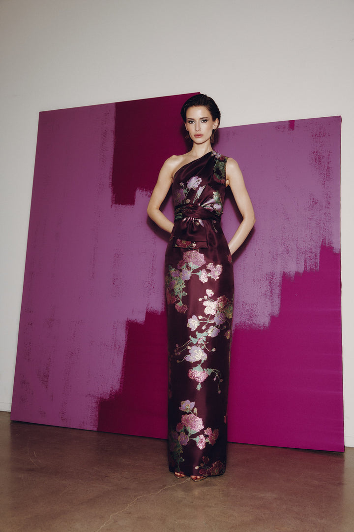 Elevate your evening allure with the Audrey+Brooks 6929 gown, a masterpiece crafted from luxurious Mikado fabric that embodies sophistication. The one-shoulder neckline features a draped bodice and a striking asymmetric bow detail, effortlessly drawing attention to your silhouette. The fitted column style cascades gracefully to the floor, complemented by a sultry back slit that adds a hint of intrigue as you move. Perfect for couture events or as a mother of the bride, this gown features a hidden back zipper for seamless wear. Slip into the elegance of Audrey+Brooks, and let your presence captivate every room you enter.