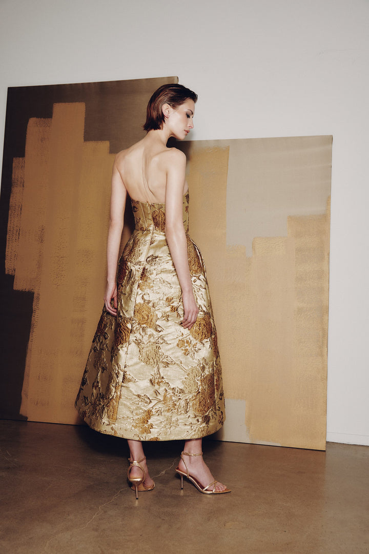 Step into a realm of elegance with the Audrey+Brooks 6937, the epitome of sophisticated grace. This striking midi dress features a luxurious jacquard fabric that beautifully captures light, enhancing your natural allure. The A-line silhouette, complete with a corseted bodice, accentuates your waist while ensuring comfort and style, making it perfect for illustrious cocktail events or couture gatherings. Adorned with a chic square neckline and a strapless design, you’ll exude confidence and poise. The full skirt, layered with crinoline, creates a captivating movement that turns heads with every step. Finished with a sleek back zipper, this exquisite piece balances timeless craftsmanship with modern flair, ensuring you make an unforgettable impression. Let the Audrey+Brooks 6937 elevate your wardrobe and make you the center of attention at any affair.