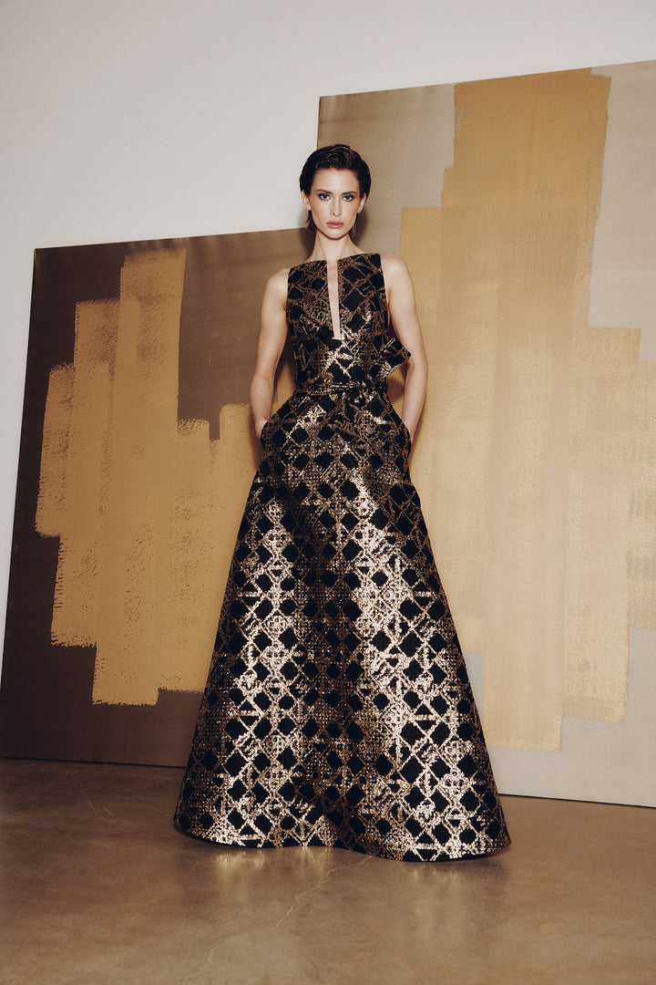 Introducing the Audrey+Brooks 6944, a stunning evening gown that redefines elegance and sophistication. Crafted from luxurious jacquard, this A-Line silhouette is designed to celebrate your figure with its fitted bodice and flattering empire waist, accentuated beautifully by a charming bow detail. The plunging neckline adds a daring allure, while the full skirt, enhanced by crinoline, flows gracefully with every step you take, ensuring you capture attention and admiration at any gala or special event. With a back exposed zipper for an impeccable fit, this sleeveless masterpiece ensures comfort and style, inviting compliments from all corners. Revel in the artistry of couture design as you embrace the confidence that comes from wearing Audrey+Brooks. Perfect for the mother of the bride or as a standout piece for any elegant occasion, this gown offers a luxurious experience that transforms your evening into a memorable celebration.