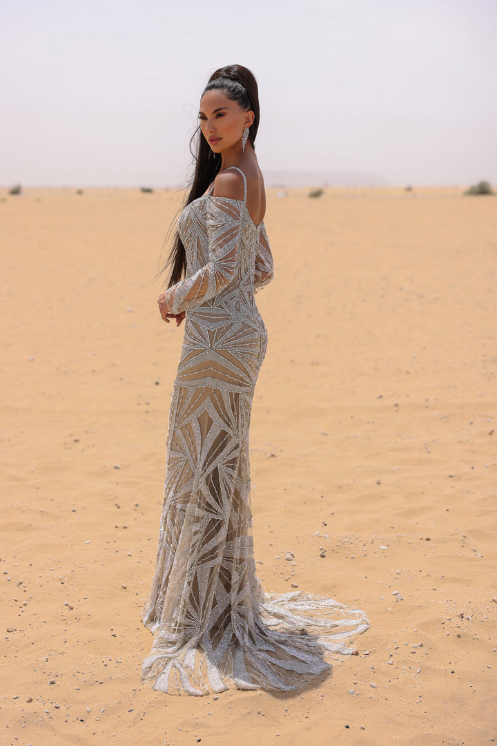 Experience the epitome of refined glamour with the Chic and Holland HF110030, a couture evening dress designed to captivate. This long, fitted mermaid gown is meticulously adorned with shimmering beads that catch the light with every movement, enveloping you in radiant sophistication. The sweetheart neckline elegantly frames your décolletage, complemented by delicate spaghetti straps and a graceful long sleeve detail that adds a modern twist to classic allure. Finished with a dramatic train and discreet zipper back, this masterpiece is crafted for unforgettable moments, making you feel effortlessly exquisite and commanding at any high-profile event.