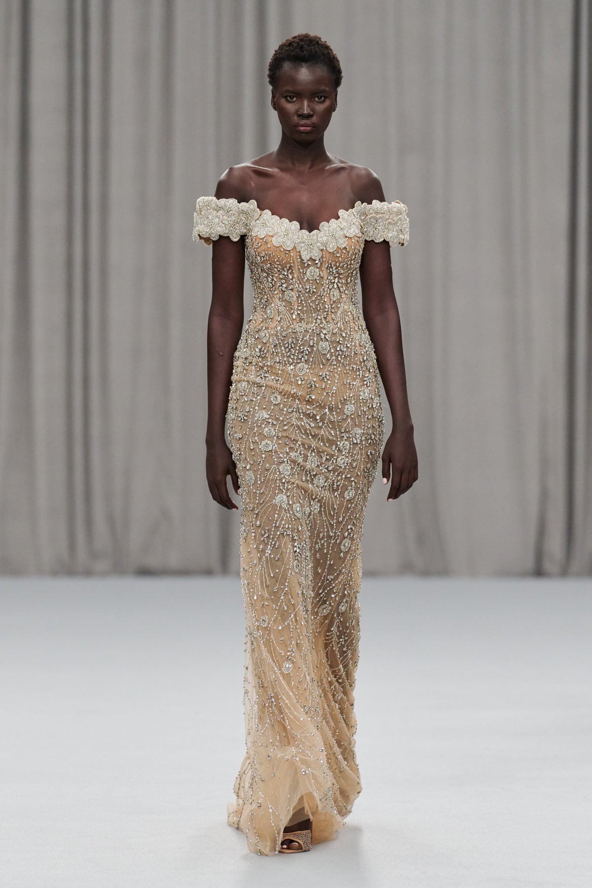 Step into an evening of elegance with the Chic and Holland HF110463, a masterpiece designed for those who demand sophistication and grace. This fitted long dress, crafted from exquisite beaded fabric, glimmers subtly as it catches the light, enveloping you in a radiant glow. The off-the-shoulder silhouette frames a captivating sweetheart neckline, accentuating your décolletage with timeless allure. A delicate train trails behind, adding a regal touch as you move with effortless poise. The smooth zipper back ensures a flawless fit, allowing you to embody confidence and refinement at every couture affair. Experience the allure of true luxury with this breathtaking ensemble.