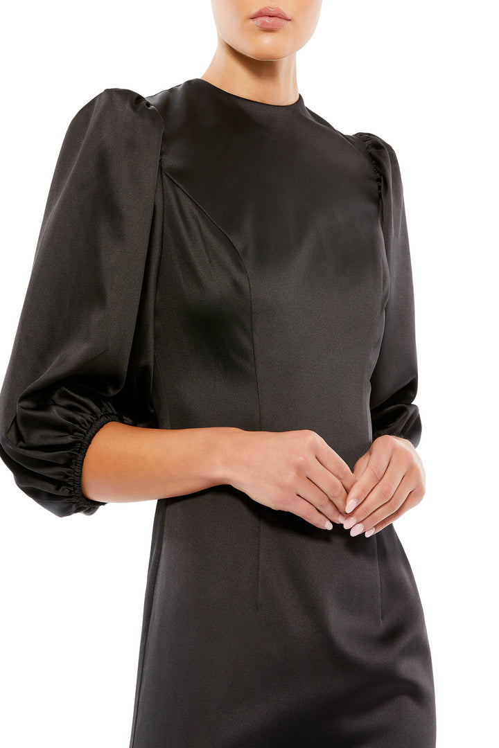 Step into the spotlight with the Mac Duggal 26672, a satin cocktail dress that redefines elegance and bold sophistication. Tailored to embrace your silhouette with its fitted column design, the high neckline adds a refined touch, while the dramatic 3/4 length puff sleeves evoke a timeless romance. Delicate fringed detailing creates dynamic movement, catching the light with every step you take, ensuring all eyes remain captivated. The short length elevates the dress’s allure, perfectly suited for upscale parties or exclusive events. Finished with a discreet back zipper for seamless comfort, this masterpiece promises to make your evening unforgettable. Experience true luxury and confidence in Mac Duggal’s exquisite craftsmanship.
