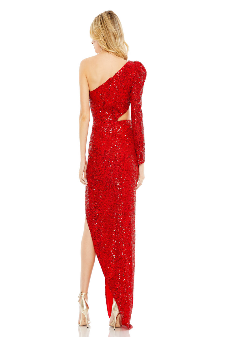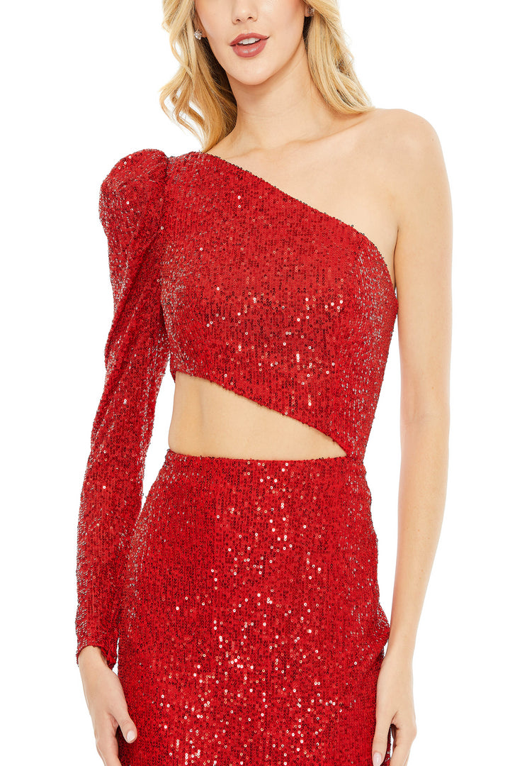 Step into a world of dazzling sophistication with the Mac Duggal 42037, a masterful blend of luxe design and captivating detail. This one-shoulder evening dress drapes you in shimmering sequins that catch the light with every movement, creating a radiant aura that commands attention. The fitted column silhouette elegantly sculpts your figure, while the daring side slit introduces a playful edge to its refined allure. Crafted for formal evenings and prom nights, the long length and smooth zipper back closure ensure a flawless fit and graceful presence. Embrace an unforgettable night where glamour meets confidence in this exquisite Mac Duggal creation.