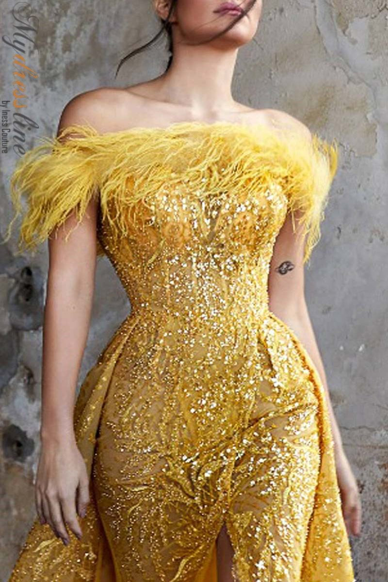 - Details: Beaded,Overskirt,Slit,Feather,Corset